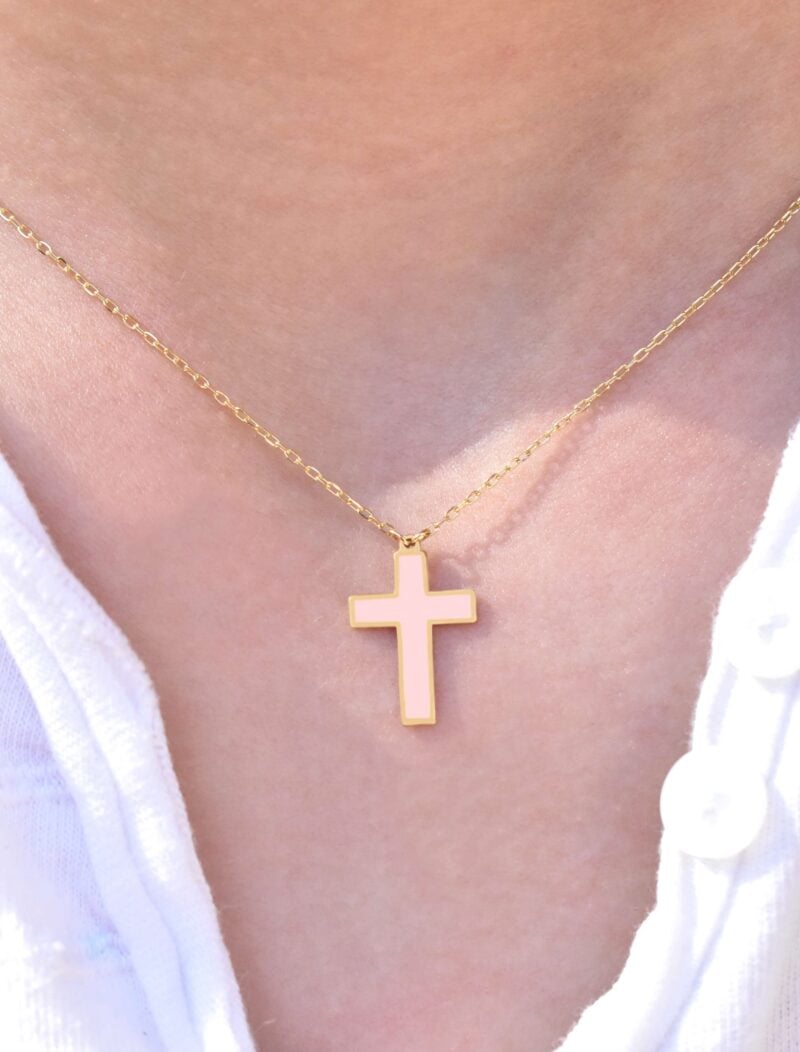 18K Gold Enamel Cross Kids Necklace