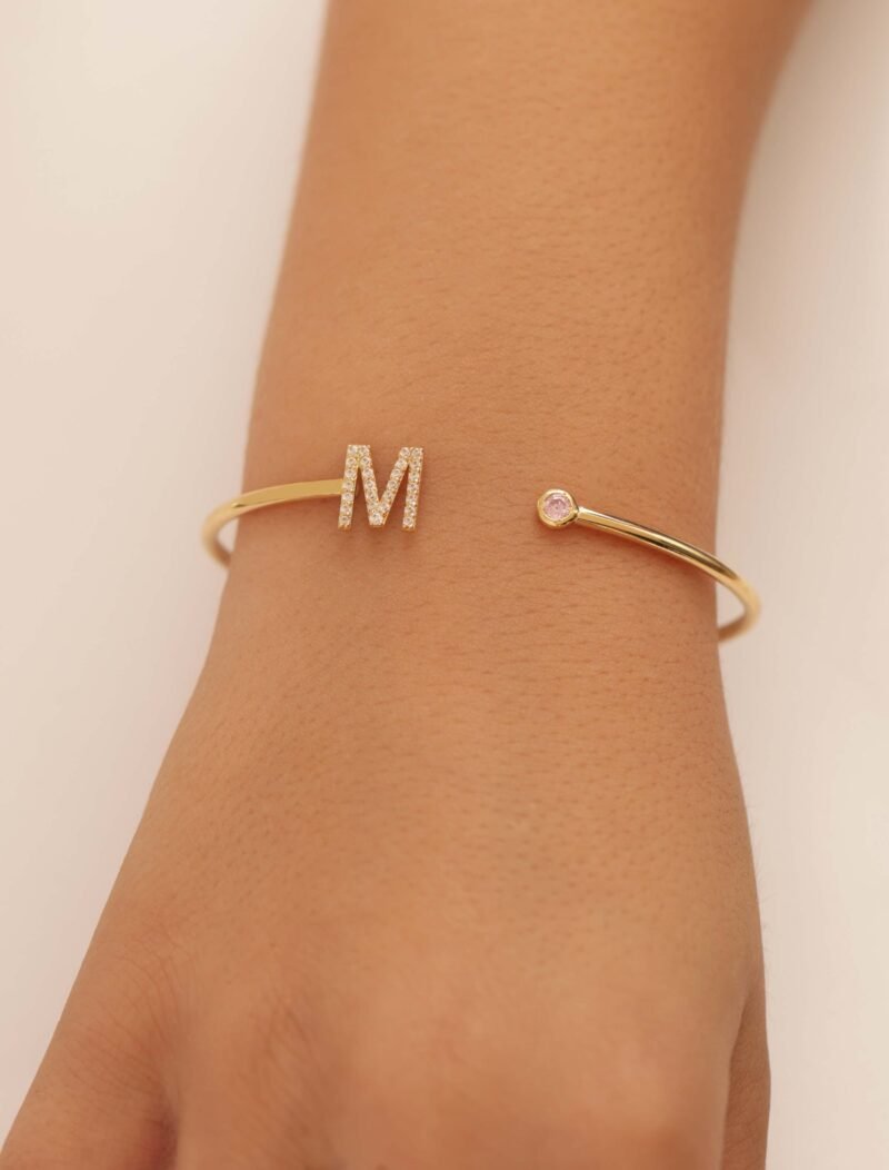 18K Gold Newborn Moving Sparkle Initial Bangle Bracelet