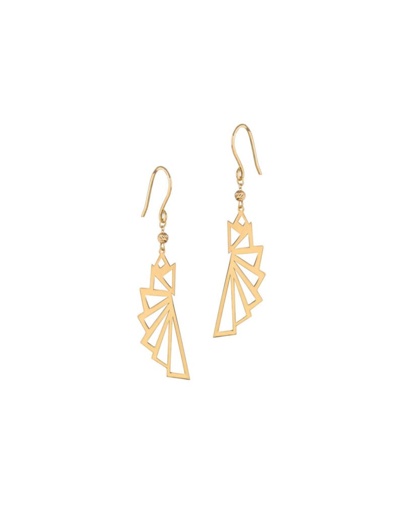 18K Gold Lozenge & Line Dangling Earrings