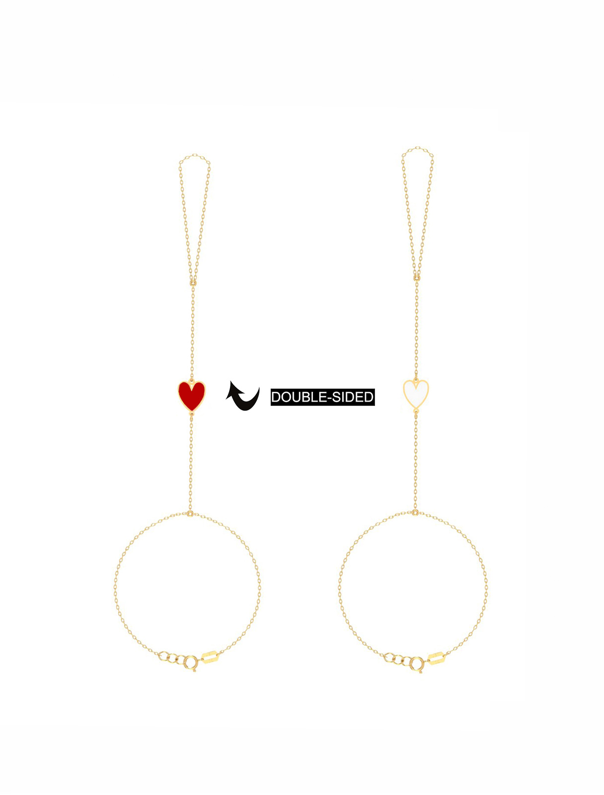 Delicate yet full of meaning, the 18K Double-Sided Enamel Heart Hand Chain blends timeless elegance with modern charm. Crafted in radiant 18K gold, this refined piece features a beautifully enameled heart motif with customizable enamel colors on each side, allowing you to express your personal style or tell a unique story. The graceful hand chain design adds a touch of romance and sophistication—perfect for everyday wear or as a heartfelt, personalized gift that symbolizes love and connection.