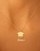 Celebrate a journey of hard work and achievement with this elegant 18K gold necklace, featuring a beautifully crafted graduation cap charm. Make it truly personal with your choice of graduation year and a custom dangling name charm delicately suspended from the hat. A meaningful keepsake for any graduate—honoring the past, and shining toward the future.