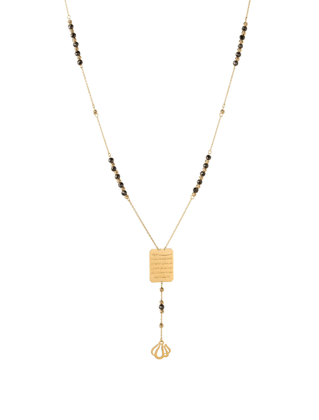 Ayatul Kursi is regarded as one of the most powerful ayahs in the Quran. Get this 18K gold Ayatul Kursi rosary, featuring gold and onyx black beads and cherish it forever.