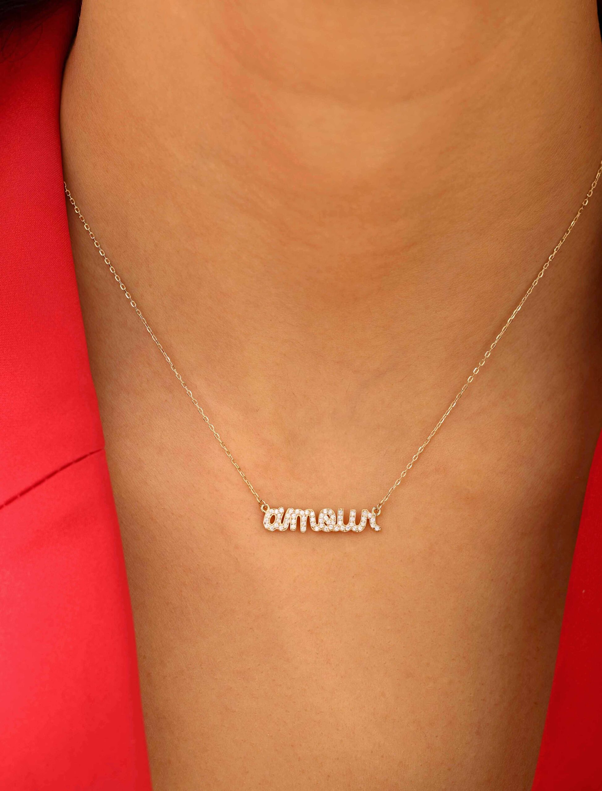 More than a necklace — a whisper of devotion. “Amour” the French word for love, is illuminated in pavé zircon gemstones to reflect the brilliance love brings into our lives. Each shimmering stone represents a moment, a memory, a heartbeat.