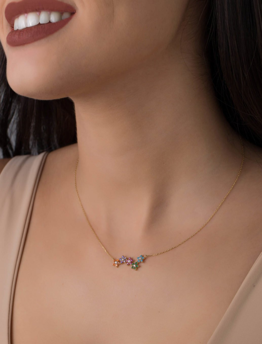 Channel the beauty and rich colors of flowers on your neckline with this gorgeous necklace, expertly embellished with multi-color zircon sparkles. Wear it daily or during any occasion to light up the whole room.
