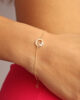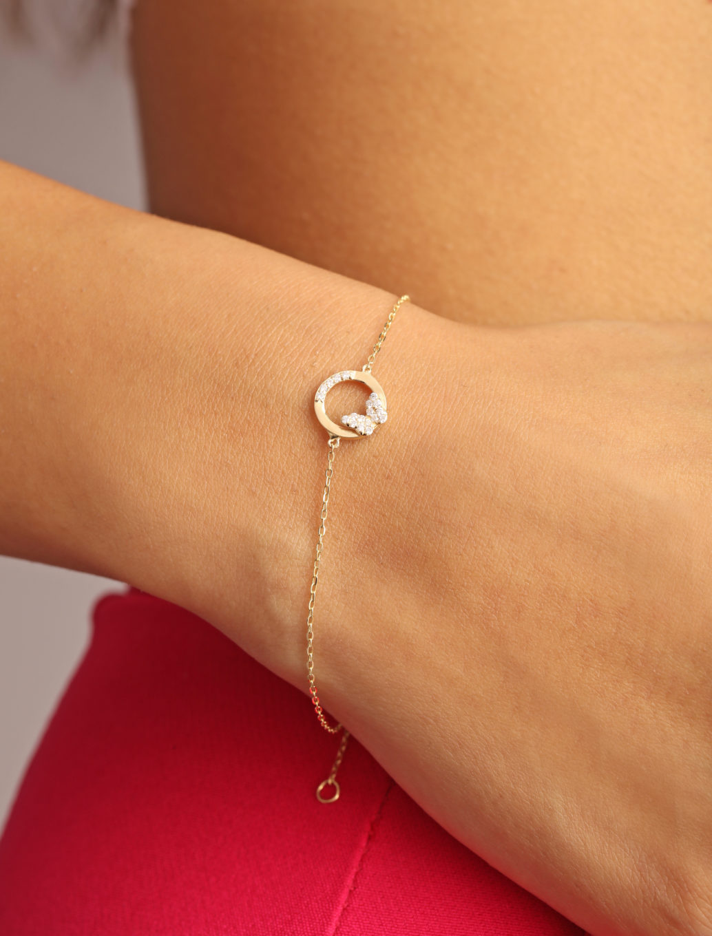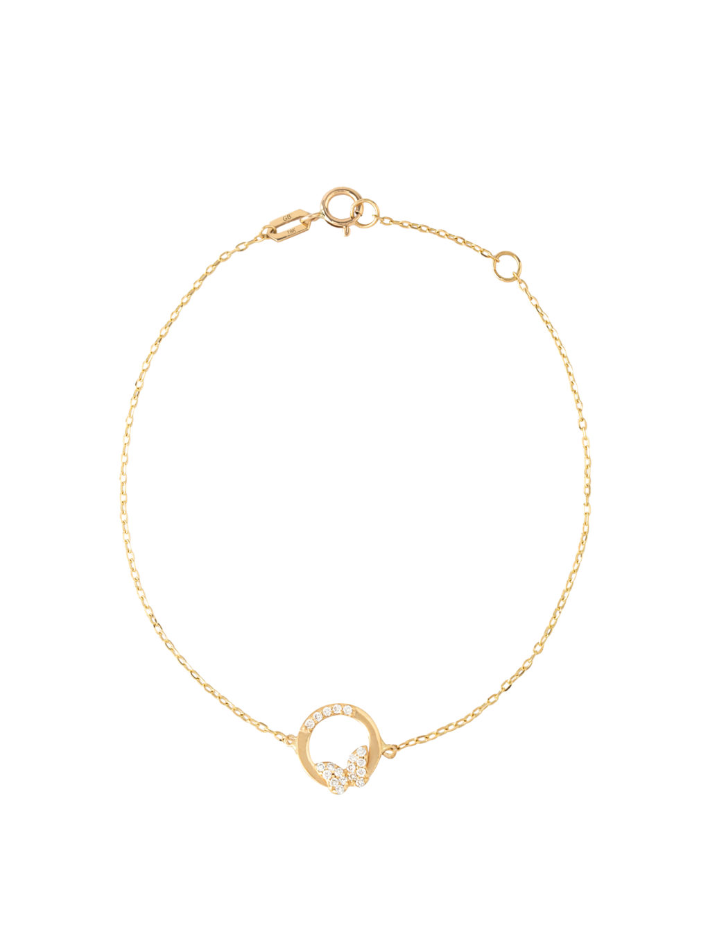 Live freely as a butterfly and always look at the positive side of life… This bracelet features a butterfly that is nestled on a circle, both embellished with sparkling diamonds. Get it as a special treat and beautiful reminder for yourself or a loved one.