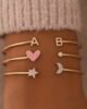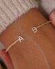 Simple, stylish, and personal — this open bangle is designed with a letter on each end, each one encrusted with dazzling zircon gemstones for a refined sparkle. Its flexible, open-ended form allows for easy wear and a comfortable fit, making it an ideal everyday accessory. Whether you choose initials that represent your name, a loved one, or a meaningful word, this bracelet blends sentiment with sophistication in a truly timeless design.