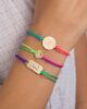 Crafted in a strong multi-color silk string, this fun bracelet boasts a trendy dog tag that can be engraved with the letter of your choice and features a glittering diamond. Get it now for yourself or as a special gift.