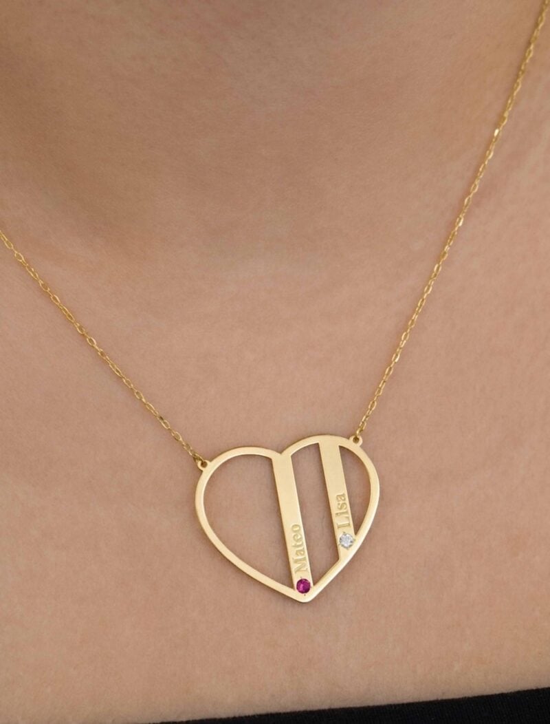 Love, personalized. This 18K gold open heart pendant, featuring names and birthstones, is a beautiful reminder of the ones who hold your heart.