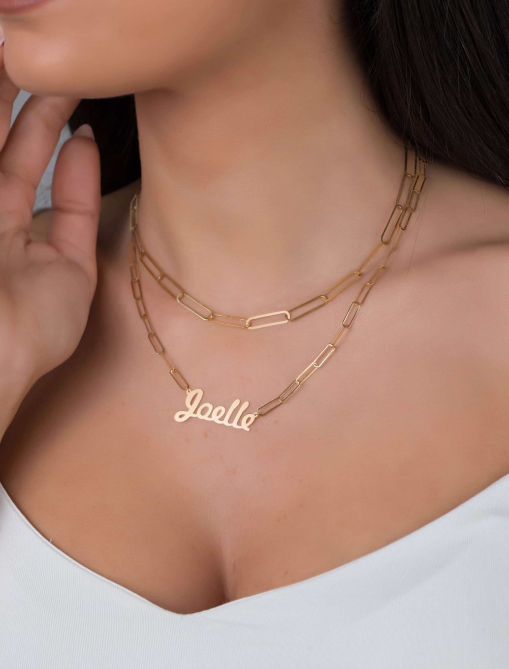 Personalize this 18k gold paper clip necklace with your name, nickname, a loved one’s name or a meaningful word and cherish it forever. Your necklace will be individually designed by our jewelry experts.