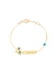 Crafted with love and attention to detail, this delicate bracelet features a charming plate adorned with a protective evil eye bead on one side, symbolizing blessings and protection. On the reverse, a whimsical train motif captures the spirit of adventure and journeys ahead. Embrace the magic of this unique and thoughtfully designed bracelet, destined to become a treasured heirloom for generations to come.