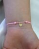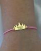 A charming 18K gold newborn bracelet featuring a delicate crown design engraved with a personalized name. Paired with a soft adjustable cord and a small heart charm, this bracelet is a beautiful symbol of love for your little princess. It makes a perfect keepsake gift for any occasion.