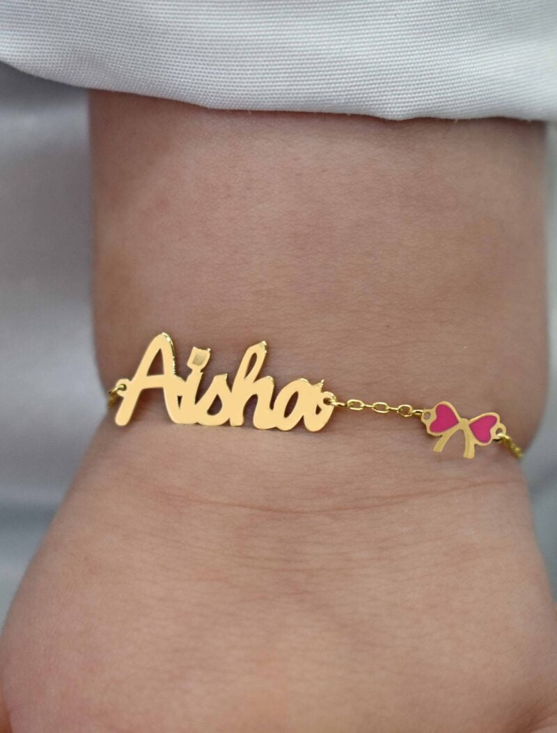 A charming 18K gold newborn bracelet featuring a delicate crown design engraved with a personalized name. Paired with a soft adjustable cord and a small heart charm, this bracelet is a beautiful symbol of love for your little princess. It makes a perfect keepsake gift for any occasion.