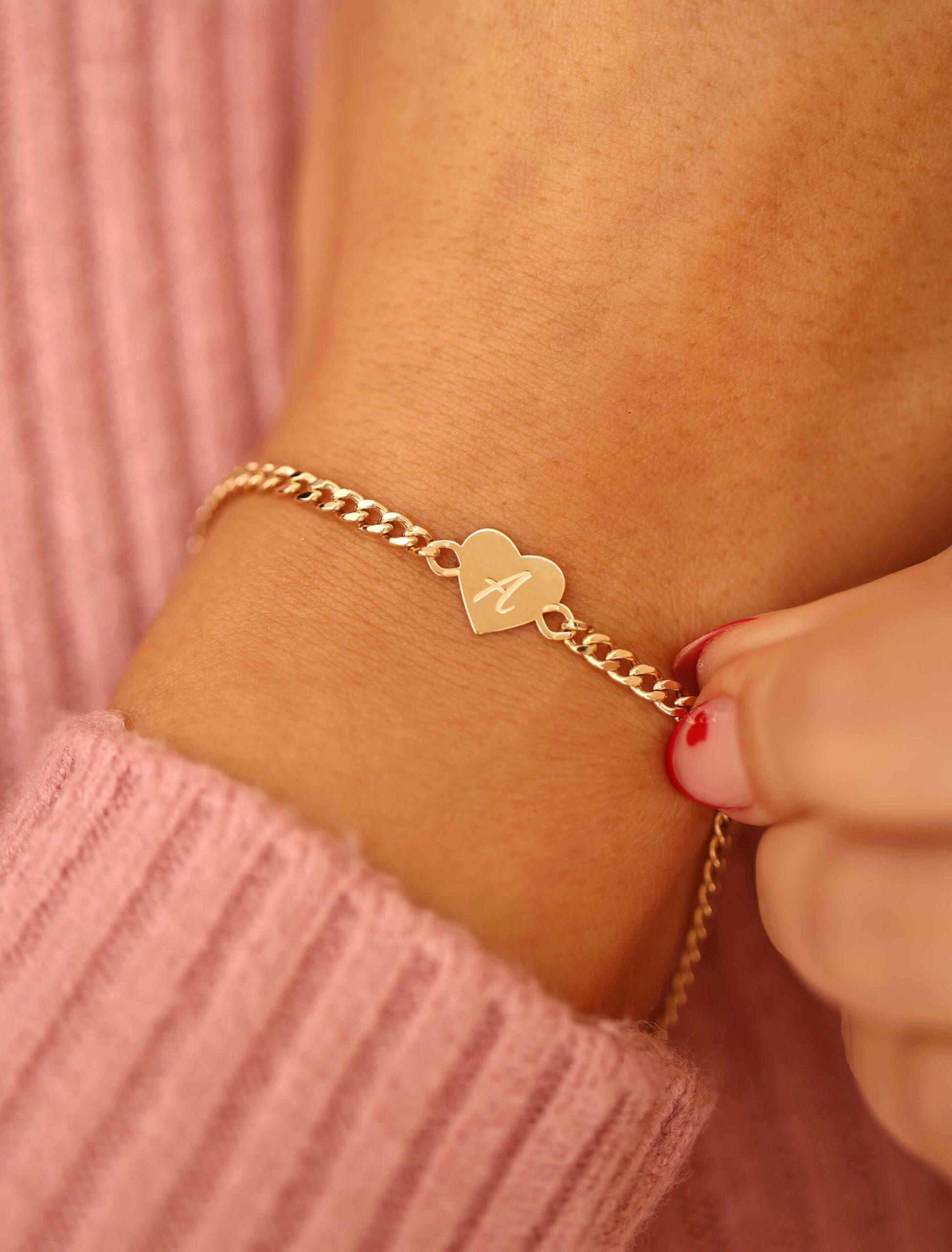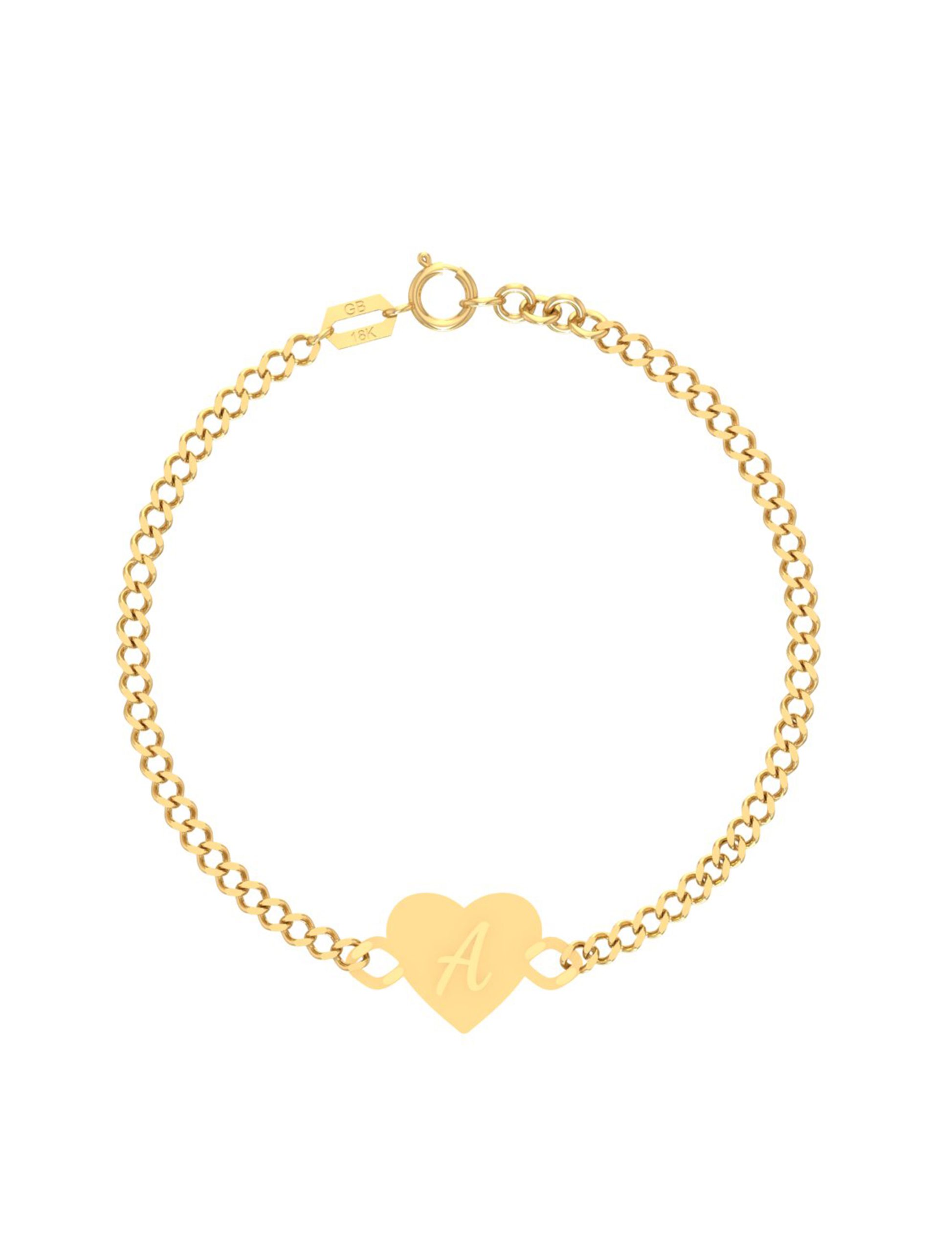 Classic and personal, this 18k gold cuban link bracelet features a polished heart charm engraved with your initial of choice. A beautiful symbol of love, connection, and identity, crafted to be worn close every day.