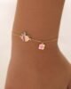 This delicate bracelet features a dainty chain, perfectly sized for tiny wrists, and is adorned with two whimsical charms — a charming bee and a dangling flower — symbolizing growth, joy, and the gentle buzz of new life.