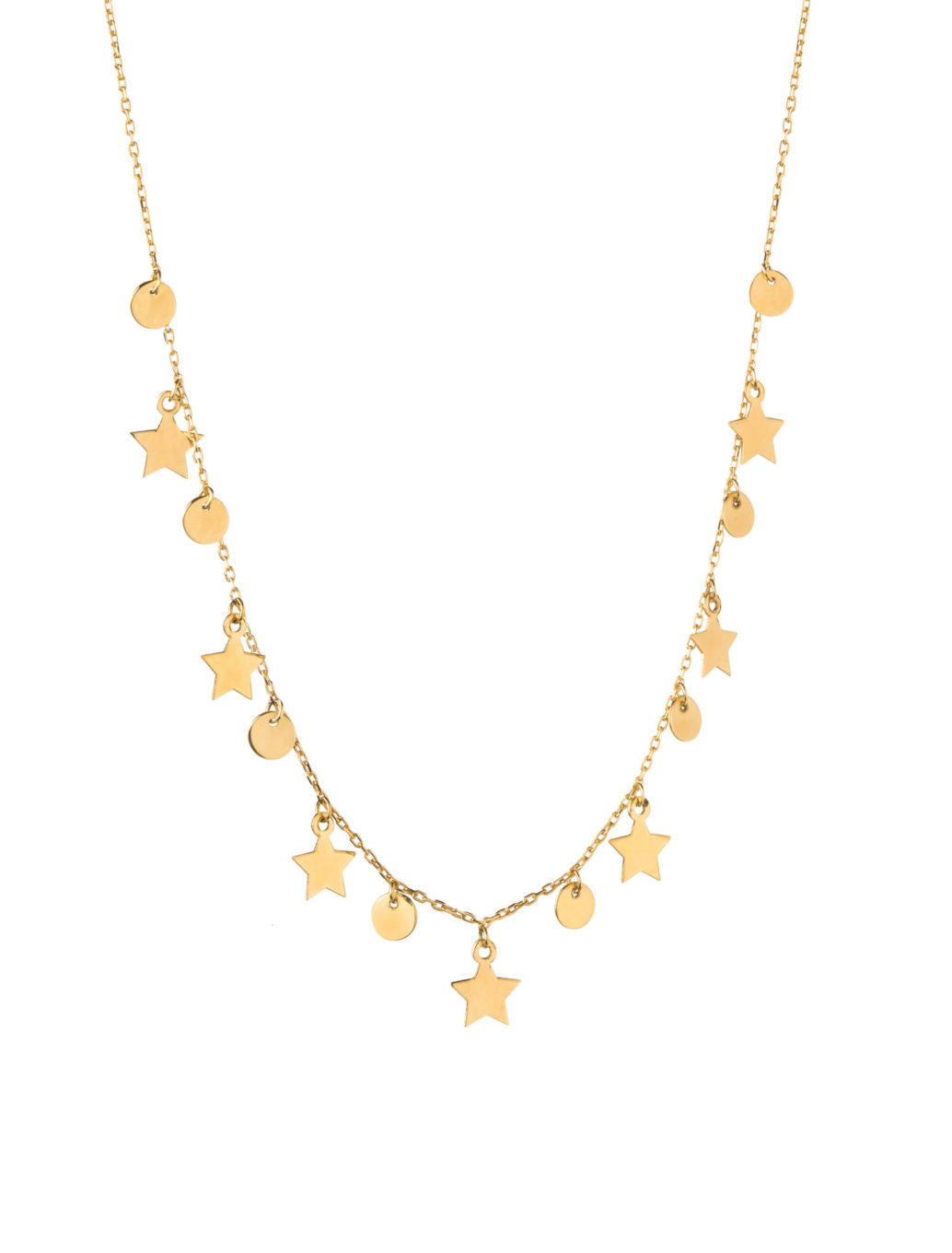 When your outfit calls for a special piece that will elevate the whole look and take it to the next level, this necklace featuring dangling stars & circles on a dainty chain is the perfect choice.