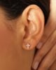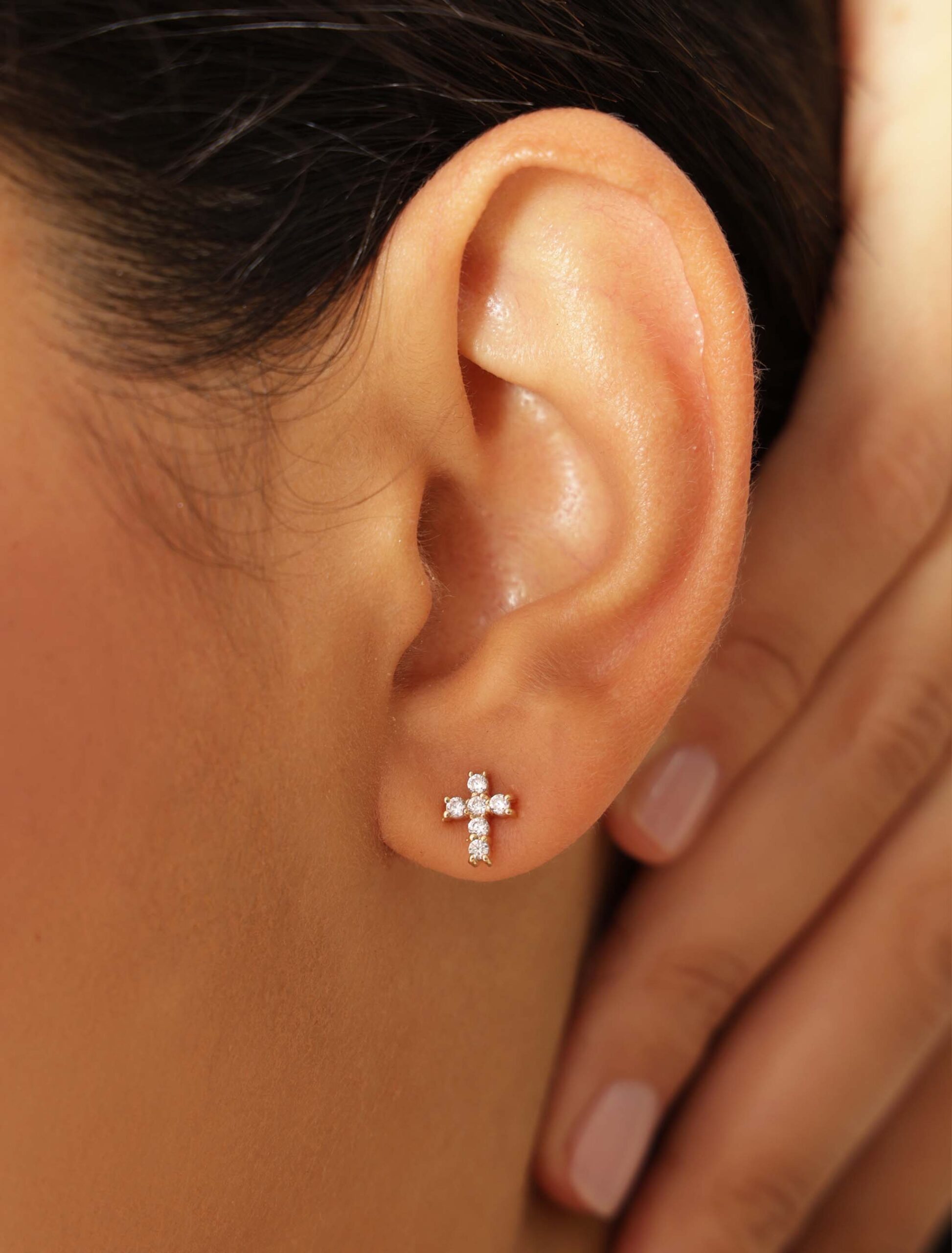 Elevate your style with these stunning 18K Gold Cross Earrings, delicately adorned with brilliant-cut zircon stones. Designed to reflect light with every movement, the earrings offer a radiant sparkle while honoring the timeless symbol of faith and strength.