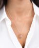 Discover the “Globe Cage Necklace”, featuring a plane in white gold covered with pave diamonds on both sides, waving inside the expertly crafted and uniquely designed 3D rose gold globe cage. Express your love for travel and adventure through this masterpiece and get it for yourself or as a very unique gift for a special person.