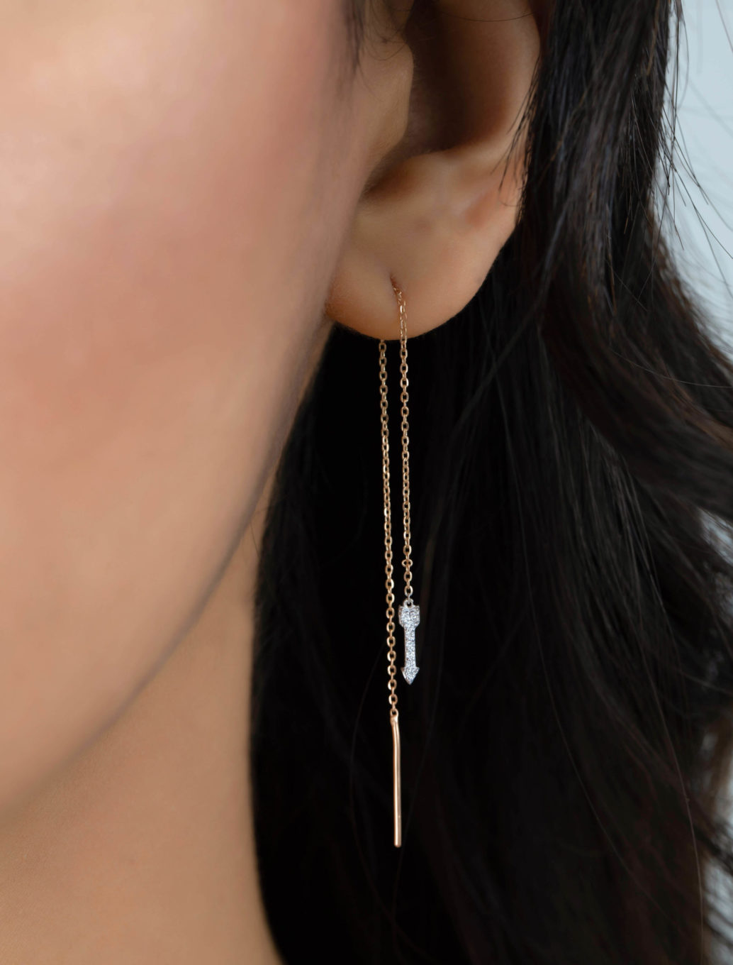 The “Radiant Arrow Earrings” strike the perfect balance between statement and minimalist and feature an arrow set with white pave diamonds on both sides. They move along with every gesture you make while offering you a radiant and illuminated look.