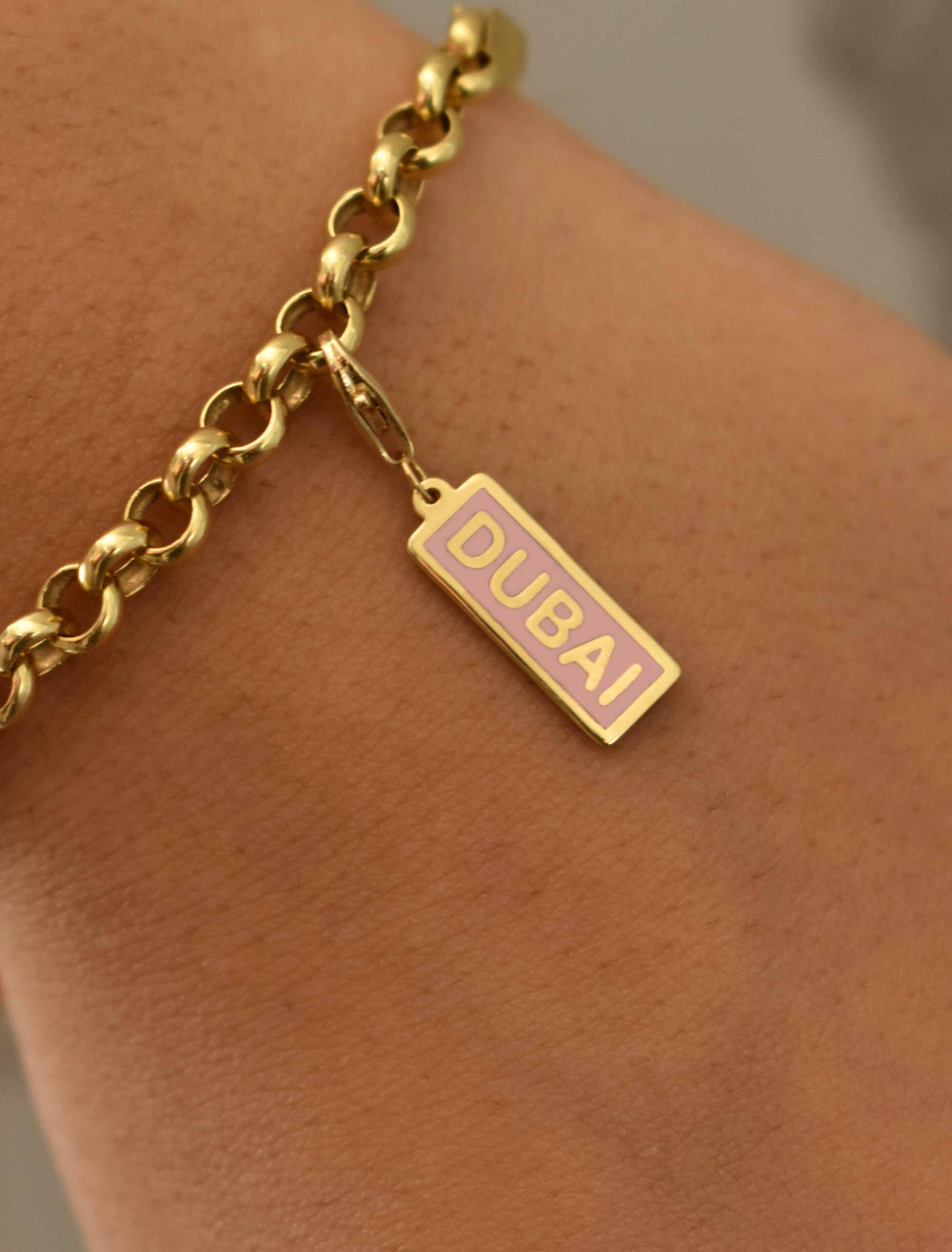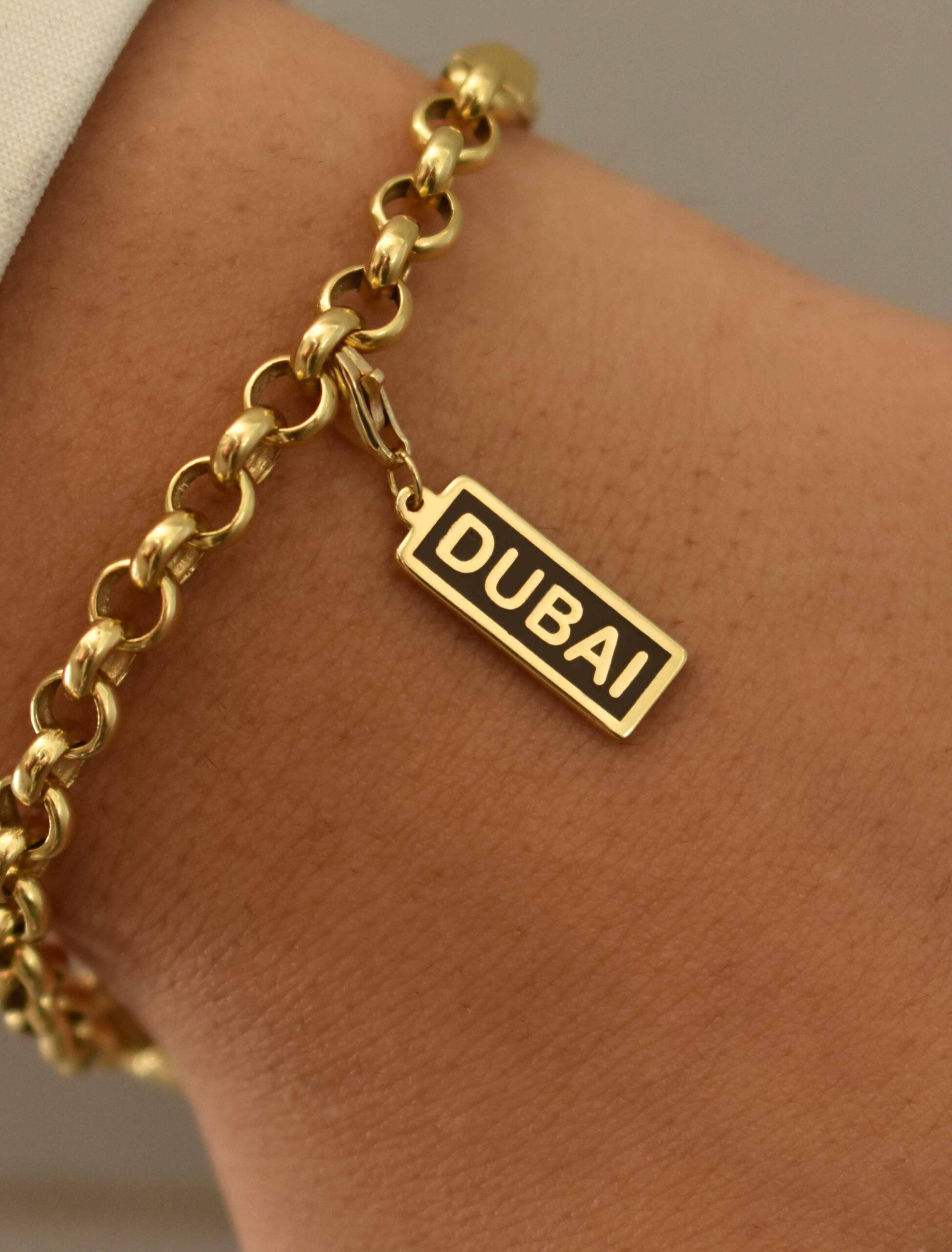 A sleek and stylish way to show your love for one of the world’s most exciting cities. This rectangular bar charm is made from 18K yellow gold and filled with smooth enamel. It’s a wonderful keepsake to mark citizenship, travel, or a residency milestone.