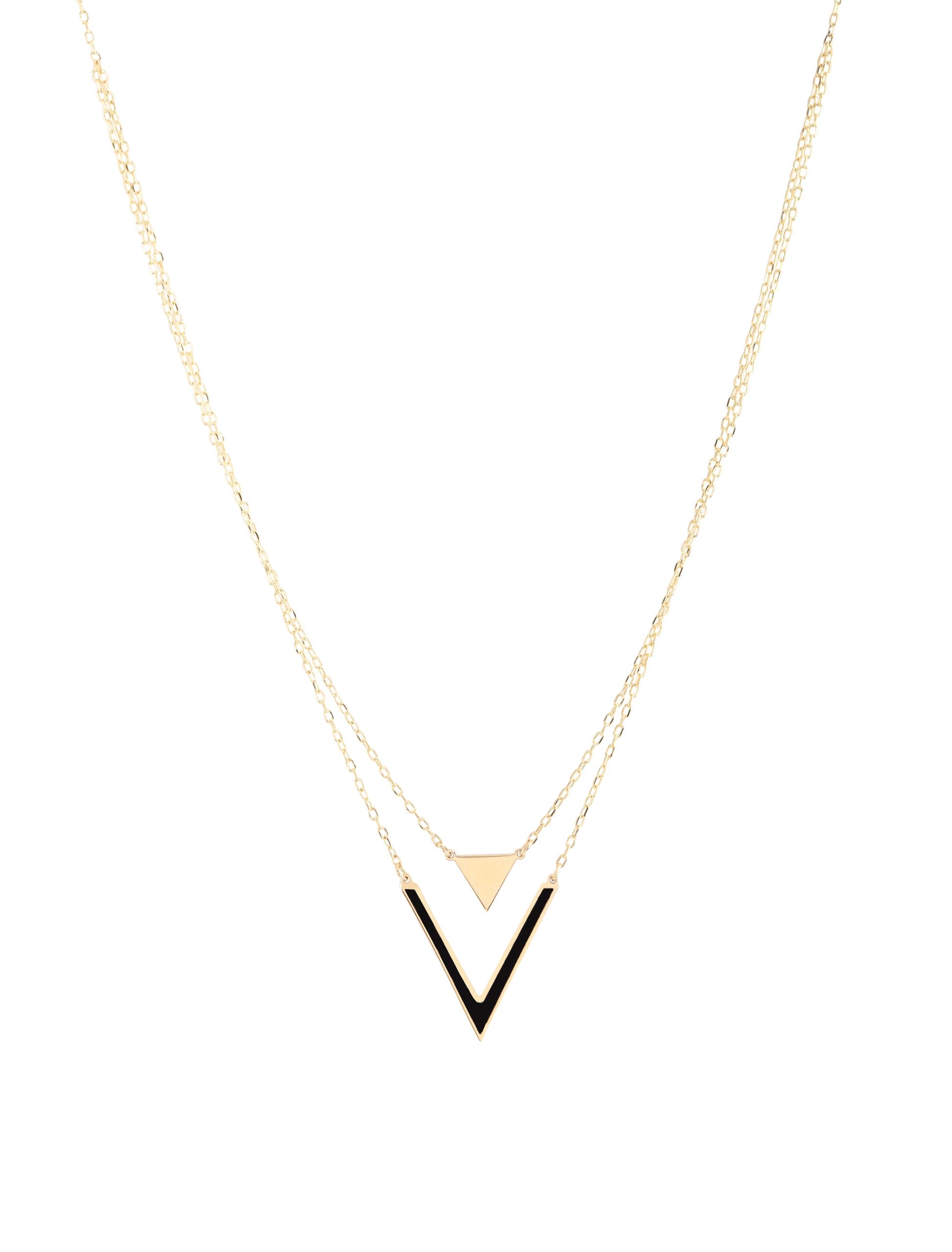 We had to upgrade one of our best-selling necklaces by adding a touch of enamel to it. This 2 layers necklace is for sure a must-have. It features a minimal triangle on the first layer and a V shape adorned with black enamel on the second layer. Get this ultra versatile piece for yourself and wear it with any outfit or gift it to a special someone!