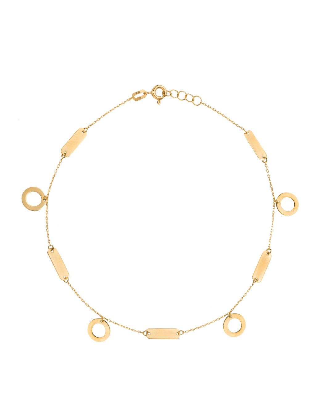 Add a little dazzle to your anklet stack with this anklet featuring an array of rectangular shapes and dangling circles set into a delicate chain.