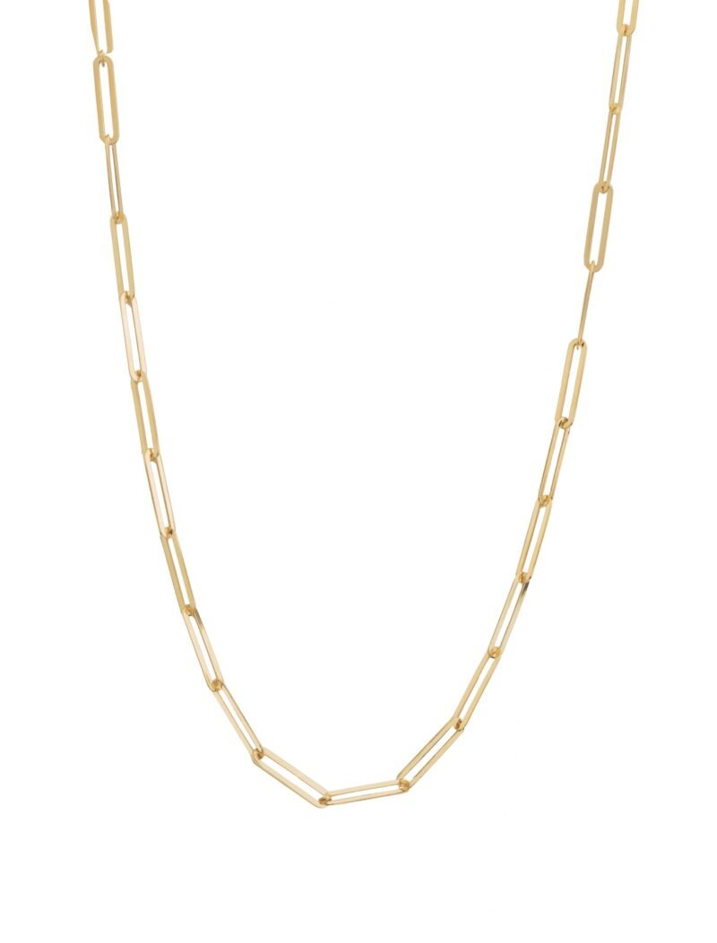 Our 18k Gold Elongated Paper Clip Bracelet is a sleek and contemporary design that effortlessly elevates your wrist, making it a versatile accessory for any ensemble. Whether worn alone for a minimalist look or layered with other bracelets, it is a timeless investment.