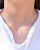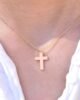 This 18K gold cross necklace is embellished with hand-applied enamel. It makes an ideal gift for a special little girl in your life on her First Holy Communion or any other occasion. Get it now and have it wrapped in our signature blush pink packaging.