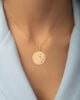 Simple, modern and incredibly classy our Encrusted Disc Diamond Necklace features a disc detailed with delicate geometric shapes and adorned with sparkling diamonds. Whether you wear this necklace solo or stacked with other styles, it is truly a showstopper.
