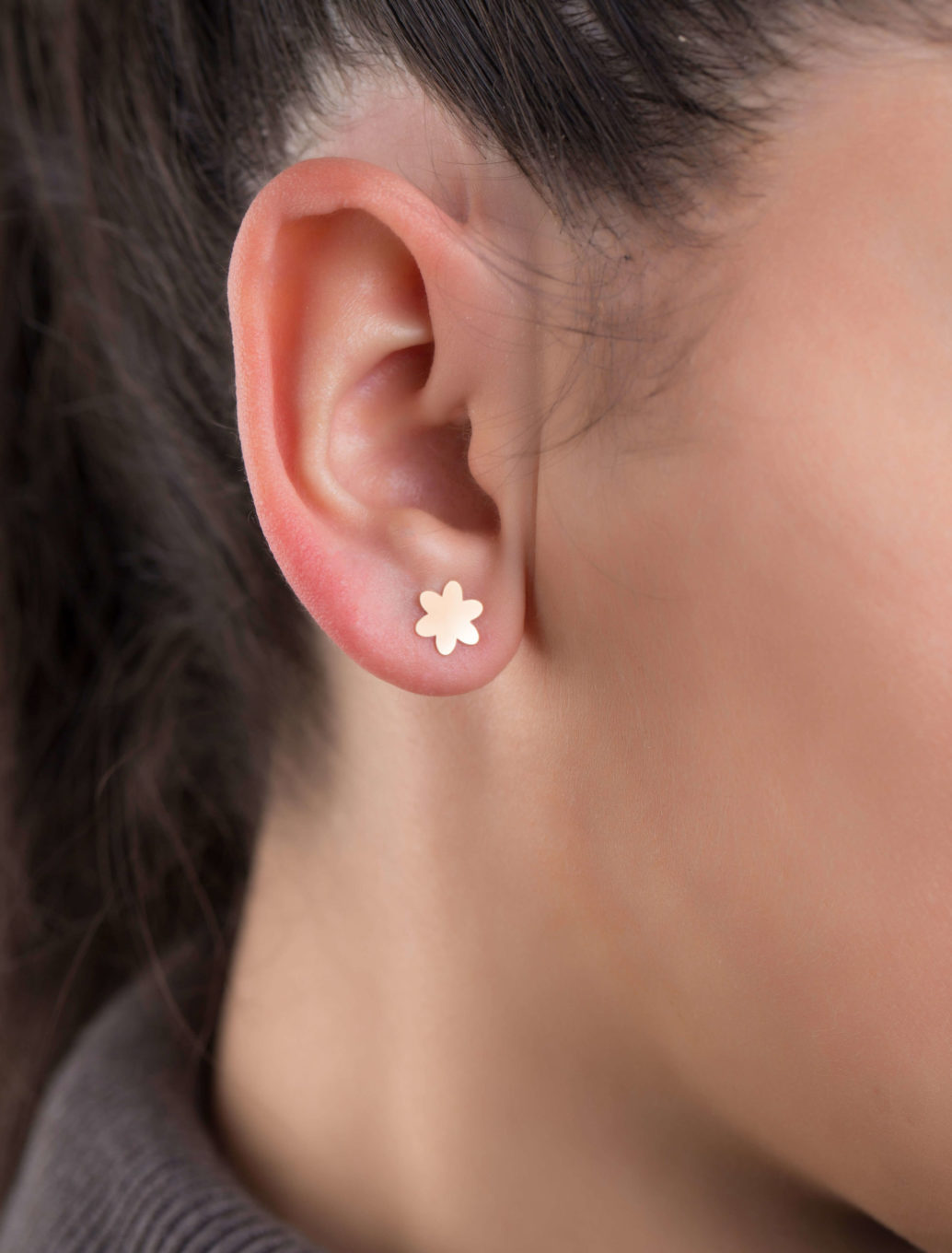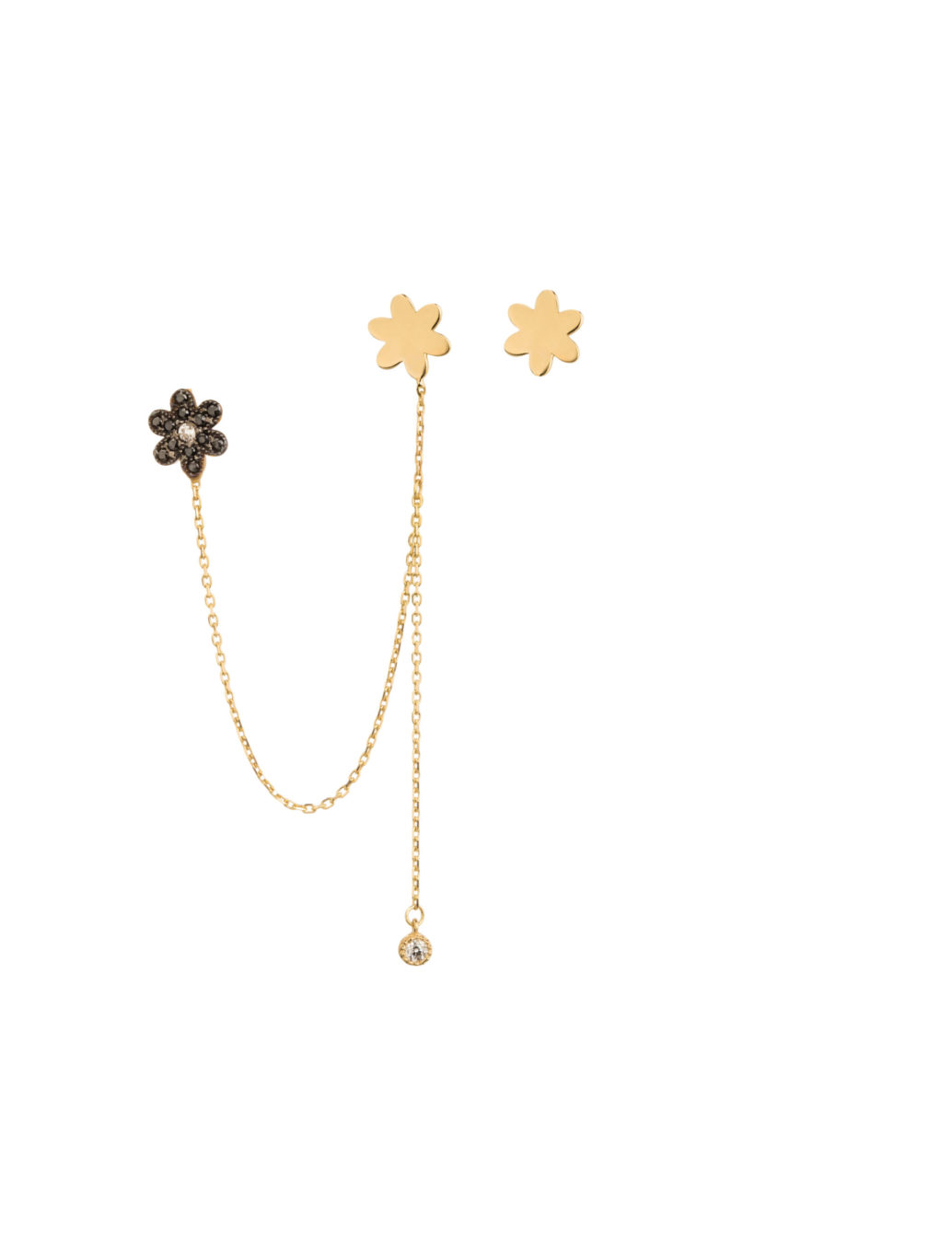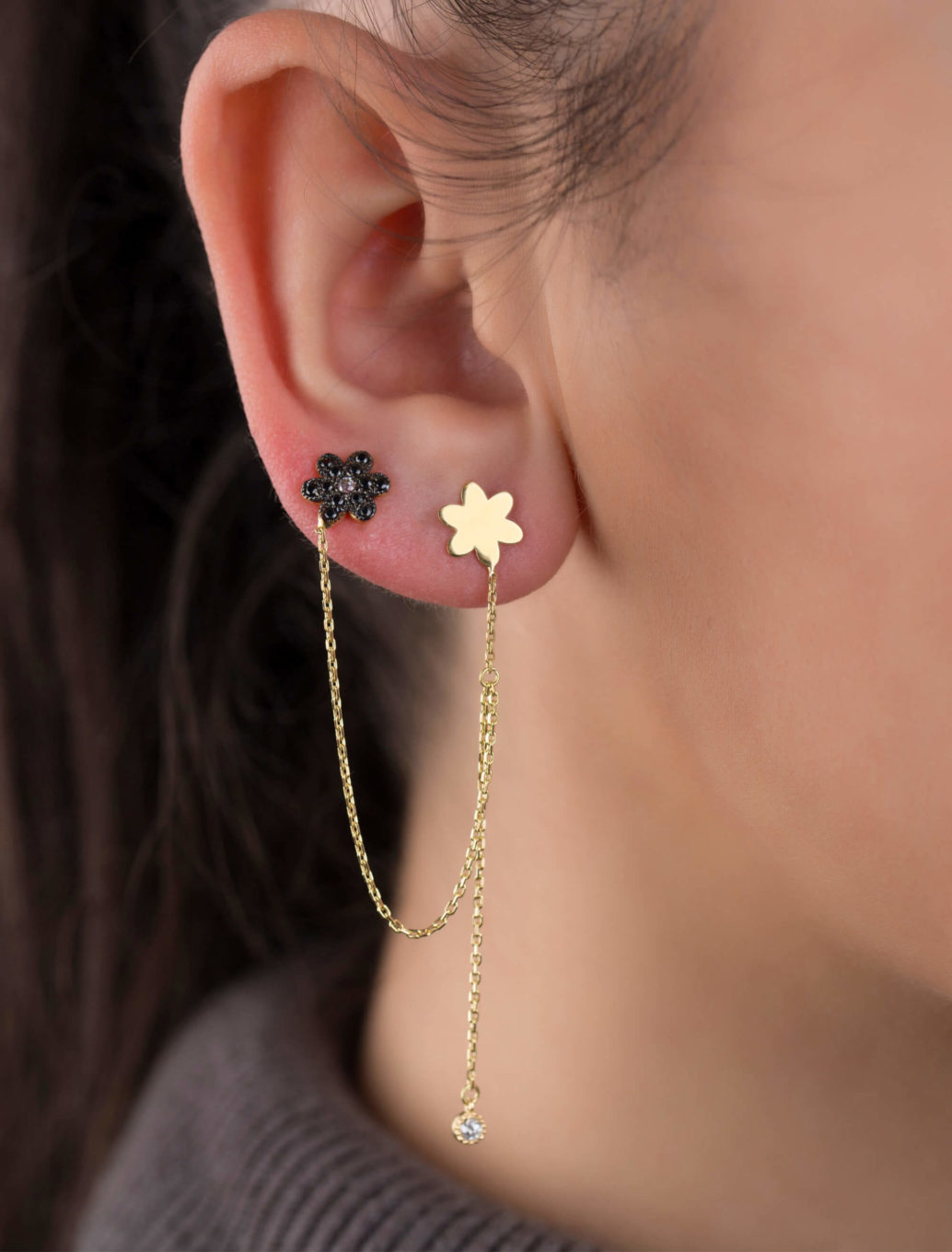 18K Gold Flower Piercing Chain Earrings 18K Gold Flower Piercing Chain Earrings
