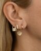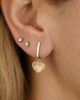 Spread the love with these huggie earrings featuring a fluted heart charm with a sparkling diamond in the center. Evoke a boldly trendy look by wearing with other earrings in the same ear.