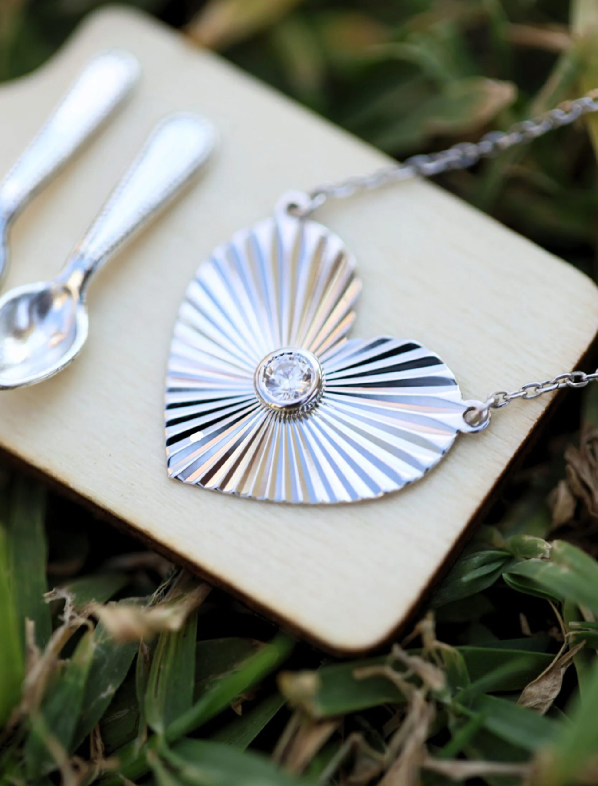 Delicately crafted in radiant 18K gold, this elegant necklace features a fluted heart pendant accented by a sparkling zircon stone at its center. A timeless piece that adds a touch of brilliance to any look.
