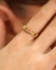 This elegant 18k gold ring features a striking rectangular interlocked design, with the central rectangle as the focal point—larger and more prominent than the others. Choose to get it plain, with a touch of enamel, or with a touch of zircon. Crafted from 18k gold, this ring is ideal for those who appreciate bold, yet refined jewelry.