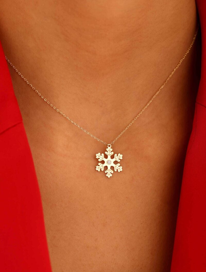 These exquisite 18K gold earrings feature a beautifully crafted snowflake design, each adorned with a sparkling zircon gemstone at its center. Elegant and radiant, they capture the magic of winter, adding a touch of icy brilliance to any ensemble.