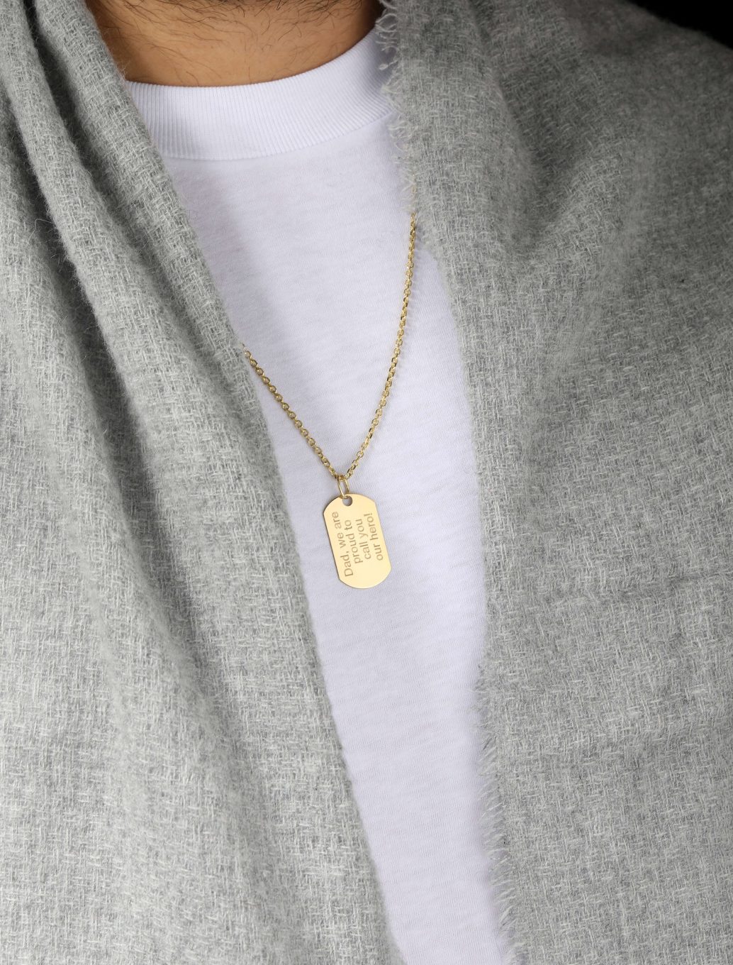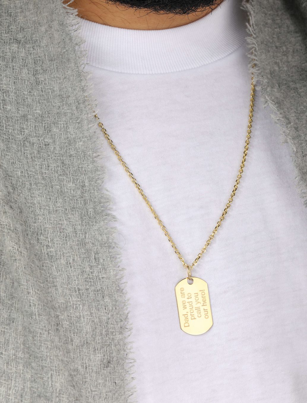 This rectangular tag pendant is handcrafted with 18k gold for a sleek style statement and features a very special message. Celebrate Dad with a timeless keepsake.