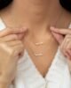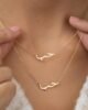 Express your feelings of love with our Hobb Necklace featuring the arabic word for “love”, crafted in 18K gold and embellished with a white or ruby red CZ stone. Delicate enough to wear every day, this necklace is an everlasting symbol of love.