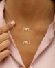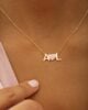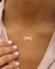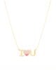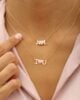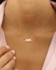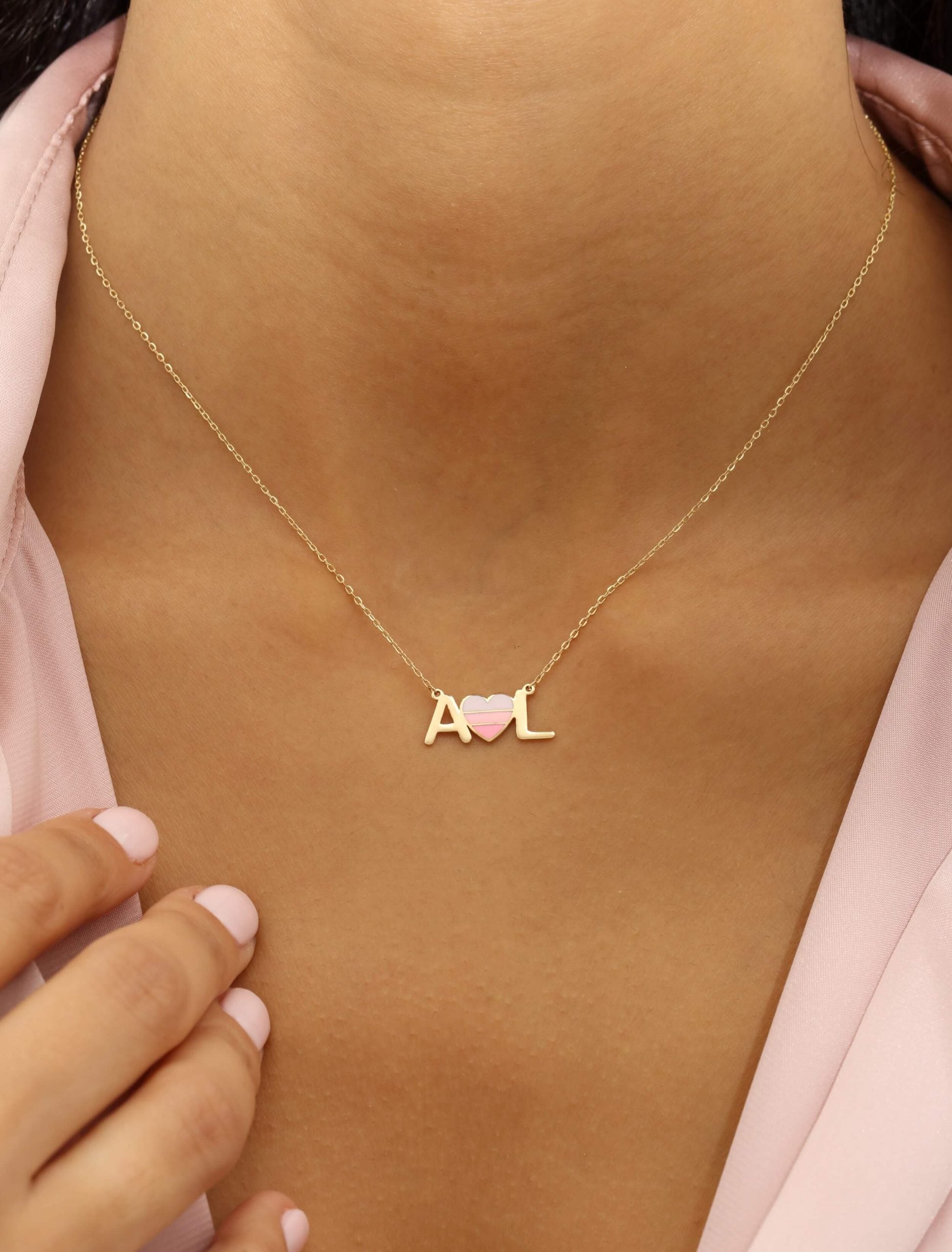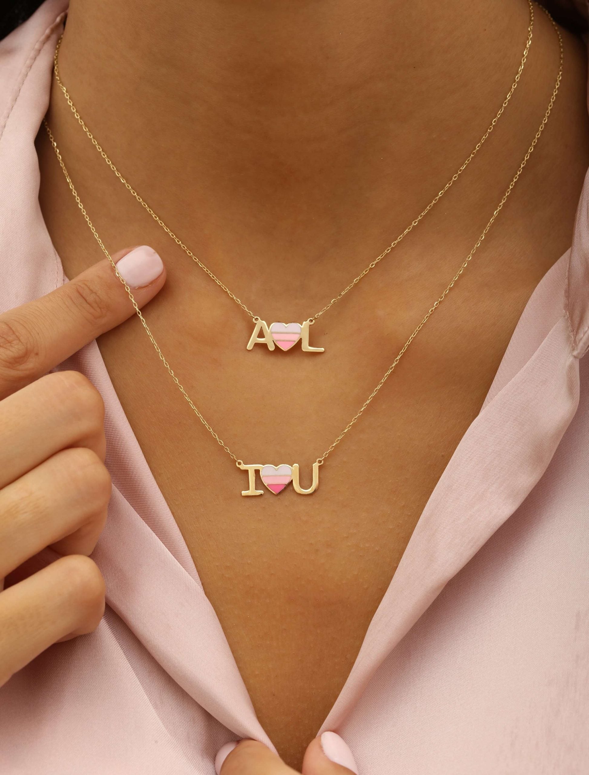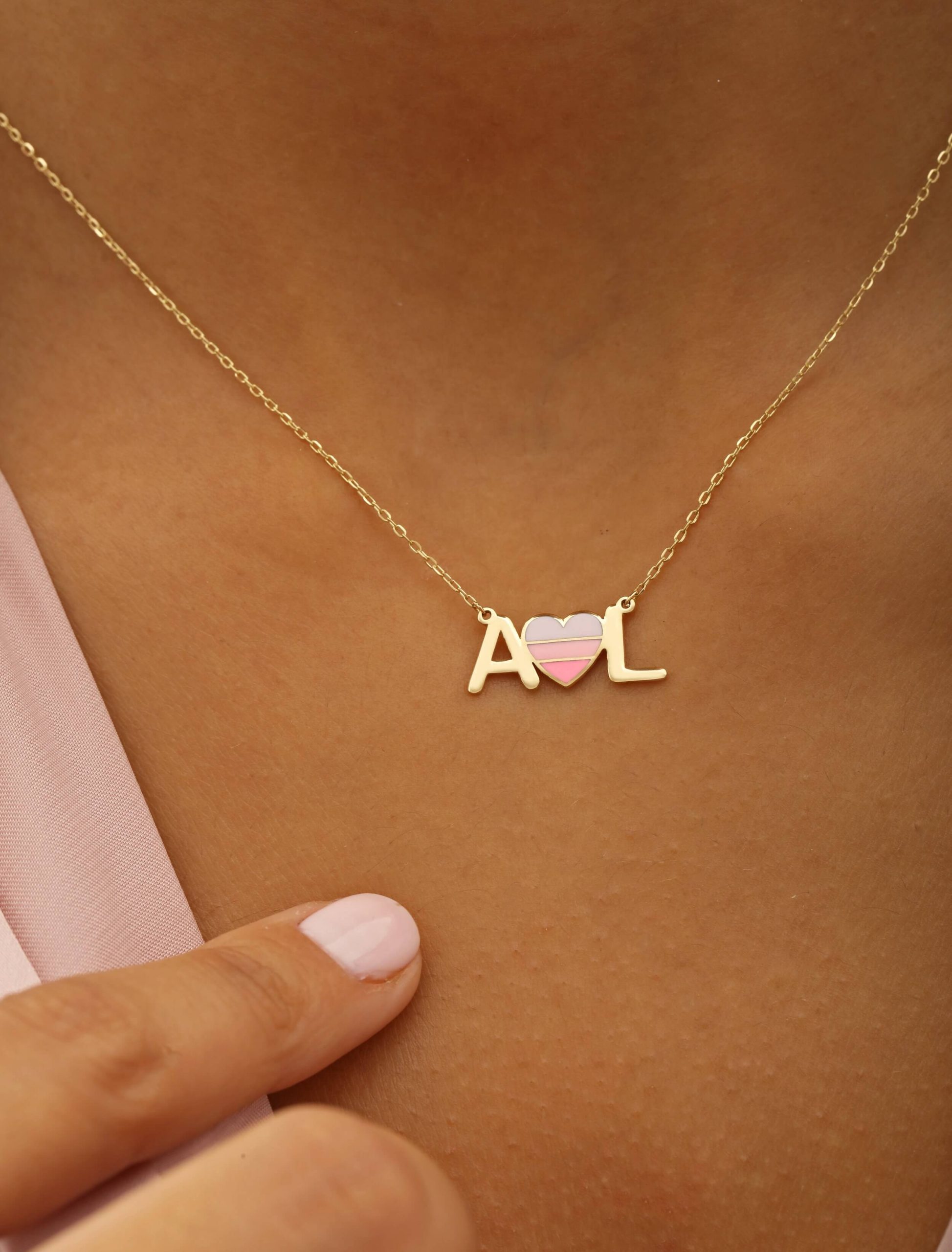 This exquisite 18K gold necklace features a delicate pendant that spells out I Love You. Crafted with meticulous attention to detail, it features a heart in the centerpiece adorned with three shades of pink. This necklace is ready to make a meaningful impression on Anniversaries, Valentine’s Day, or any occasion where you want to express your true feelings of love and affection. You can customize it with special Initials as well!