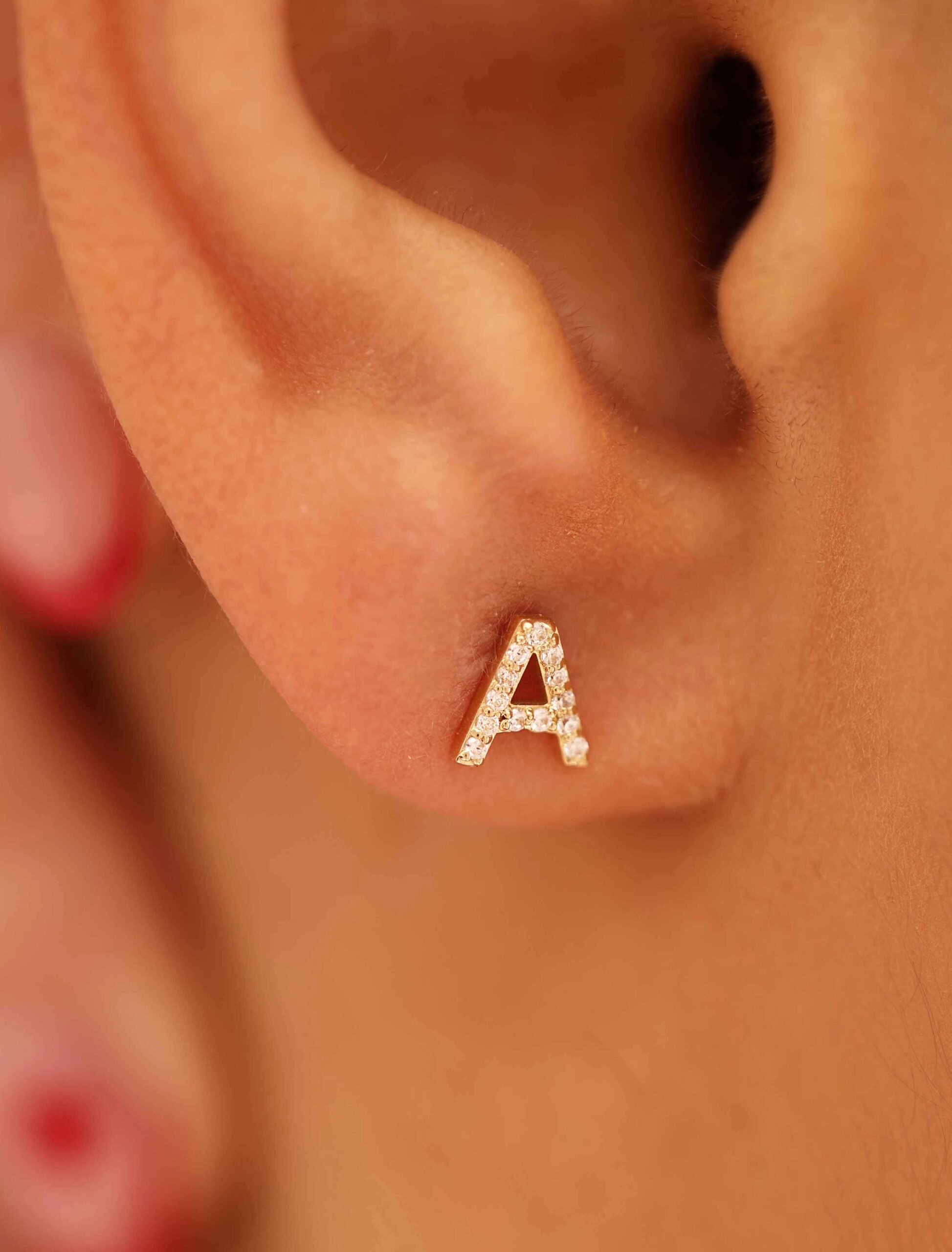 Personal and radiant — these 18K gold earrings feature a delicate initial embellished with shimmering zircon stones on one side, balanced by a single sparkling zircon on the other. A timeless design that blends meaning with modern shine, perfect for everyday wear or as a thoughtful gift.