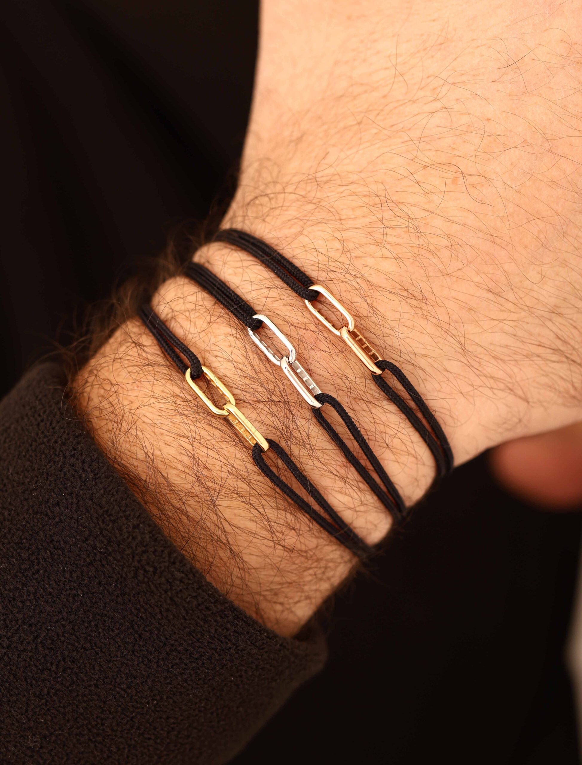 Elevate your everyday style with this refined men’s bracelet, featuring a sleek 18K gold link centerpiece seamlessly paired with a durable cord. Designed for the modern man who appreciates understated luxury, this piece combines strength, simplicity, and sophistication.