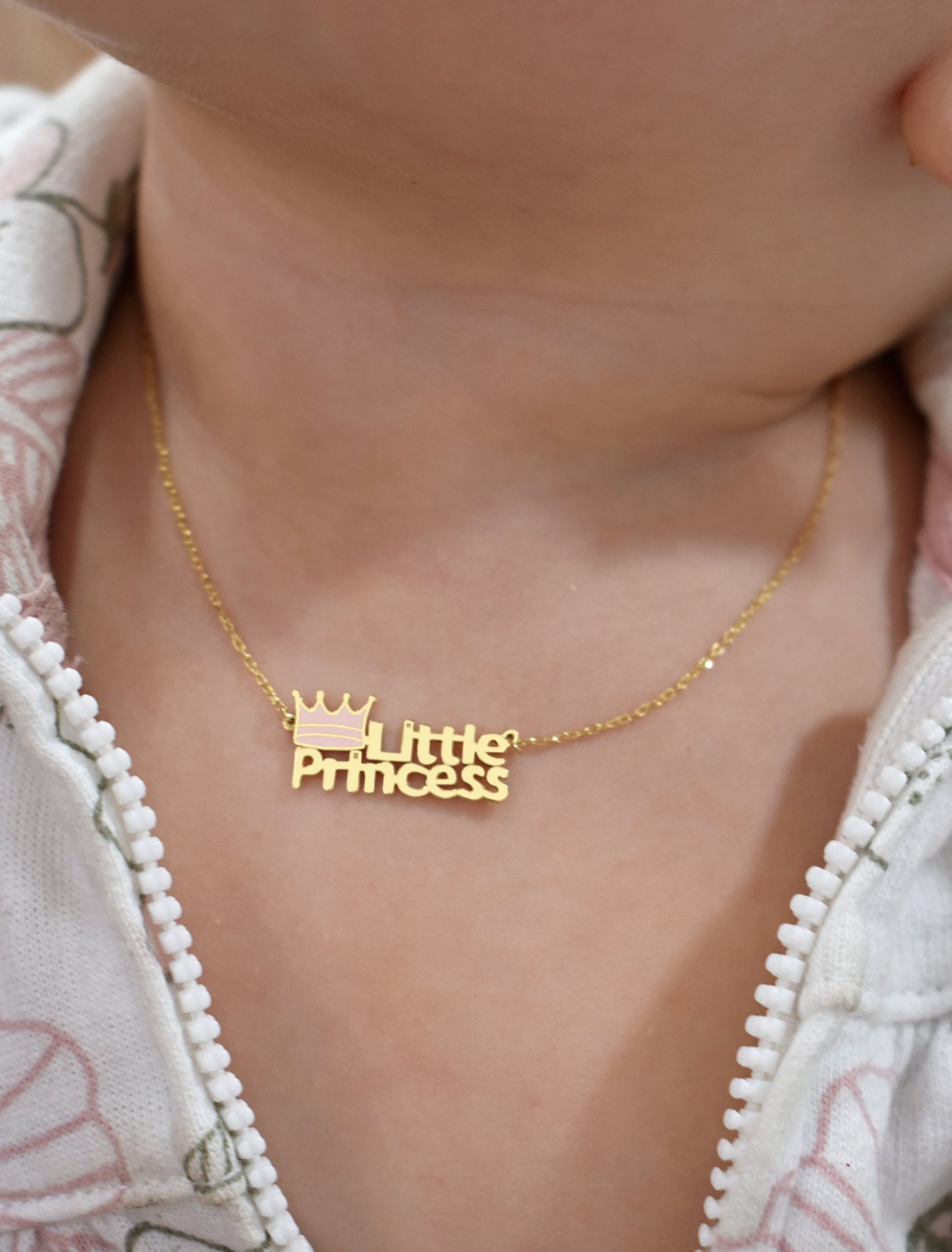 Crafted from 18k gold, this tiny treasure features a scripted “Little Princess” word, crowned with a delightful tiara. Designed with utmost comfort and safety in mind, this enchanting necklace is the perfect way to welcome your little royalty into the world, making her feel like the tiny princess she is. A keepsake to treasure for a lifetime, this necklace is ideal for gifting.