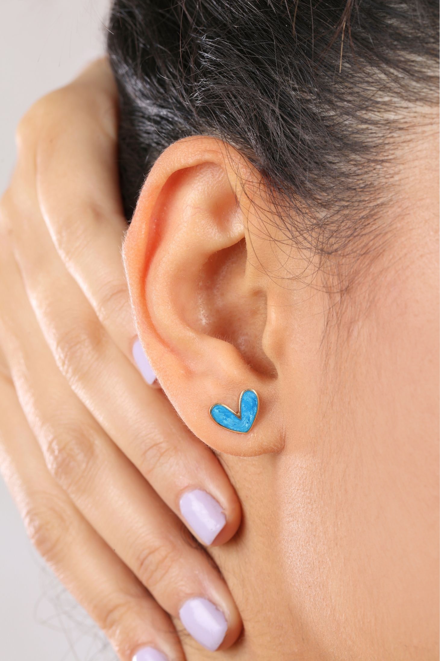 These 18K gold earrings features a modern heart design, accented with vibrant enamel for a bold, playful touch. A fresh take on everyday elegance.