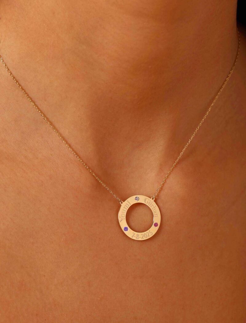 This stunning 18k custom necklace is a personalized piece that features 2 to 3 names in an elegant circular shape, separated by intricate white gold caviar-style hearts. Crafted with care, this necklace takes approximately 5 working days to prepare, ensuring every detail is perfect. A beautiful and meaningful accessory, it’s ideal for celebrating loved ones and making a lasting statement of affection.