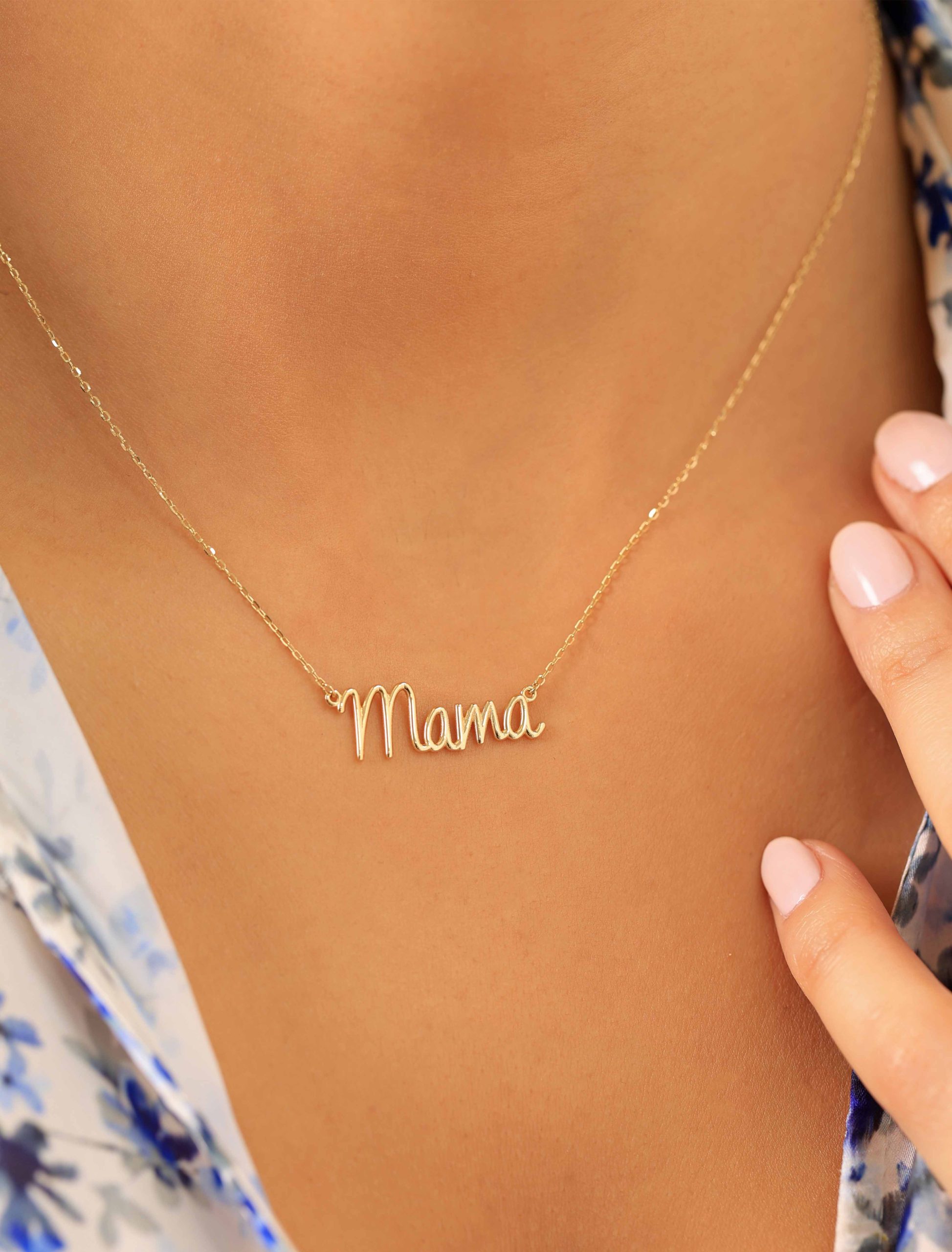 Celebrate the one who means everything with this elegant 18K Gold Mama Wire Necklace. Crafted from radiant 18-karat gold, the delicate script pendant spells “Mama” in a timeless, flowing design that feels both modern and sentimental. Suspended from a fine gold chain, it sits beautifully at the neckline—perfect for everyday wear or layering with other favorites.