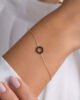 Fall in love with this neat circle bracelet, crafted with 18k gold and infused with radiance and shine. Wear it alone if you’re a one bracelet person or pair it with many other styles if you’re a stack sucker!