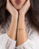 Treat yourself to this stunning paper clip bracelet featuring cute dangling charms: a thunder to electrify your look, the moon symbol of love, a key and a lock to unlock your passion and an evil eye, to keep the evil eye at bay.