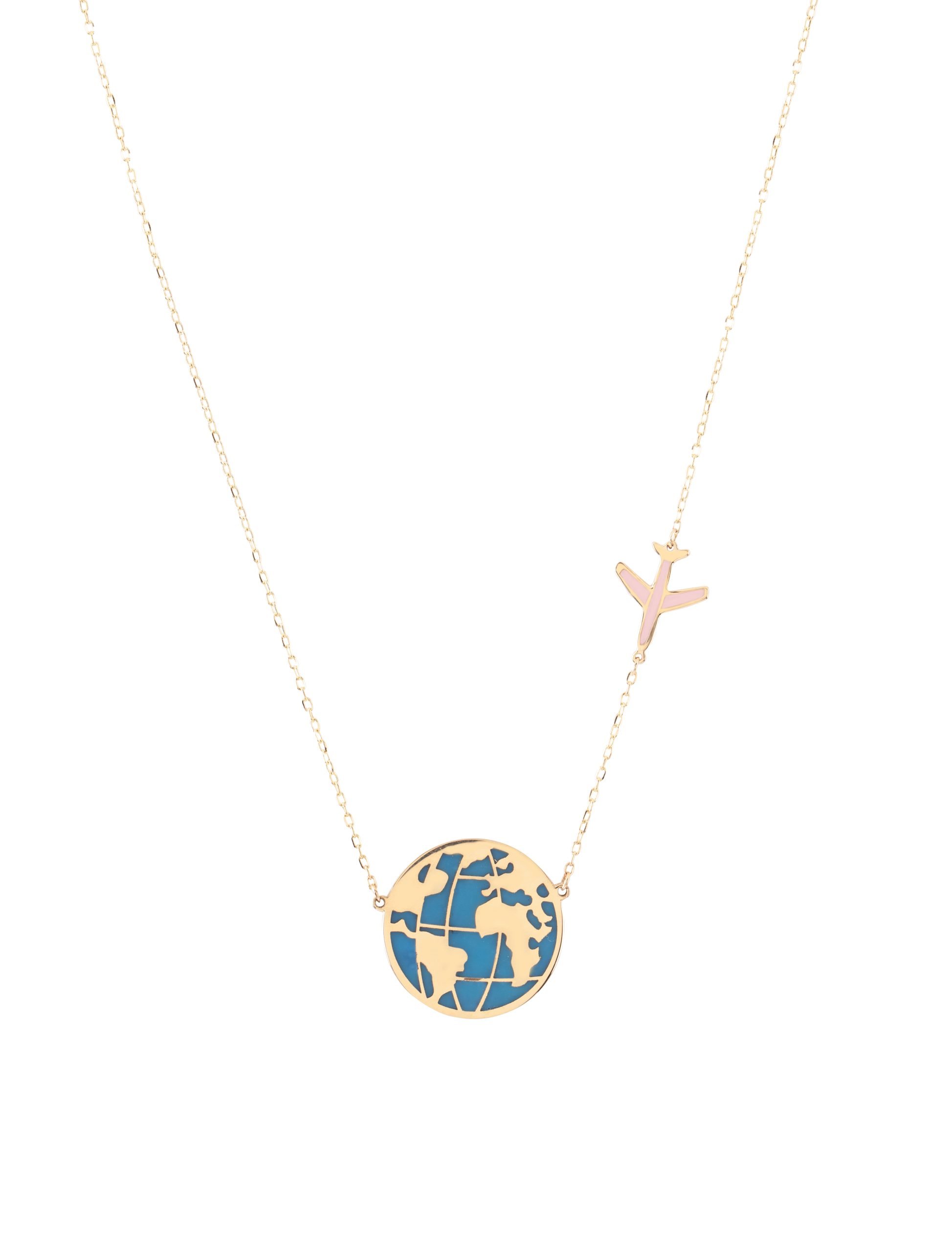 If you’re a travel enthusiast then this necklace is made for you. It features a plane and a globe embellished with vivid enamel colors. Wear it on your summer vacations and keep the travel spirit within you all year long!