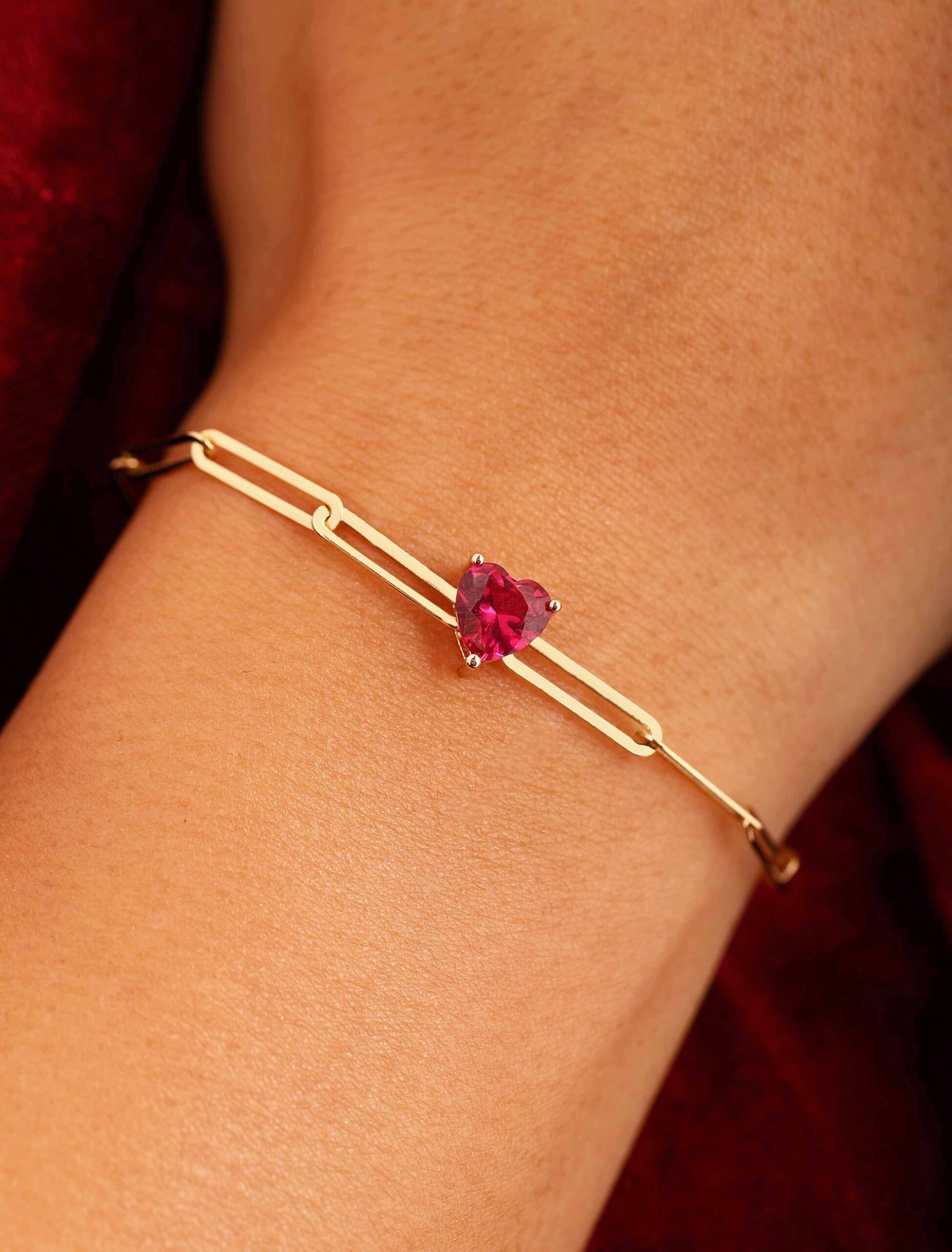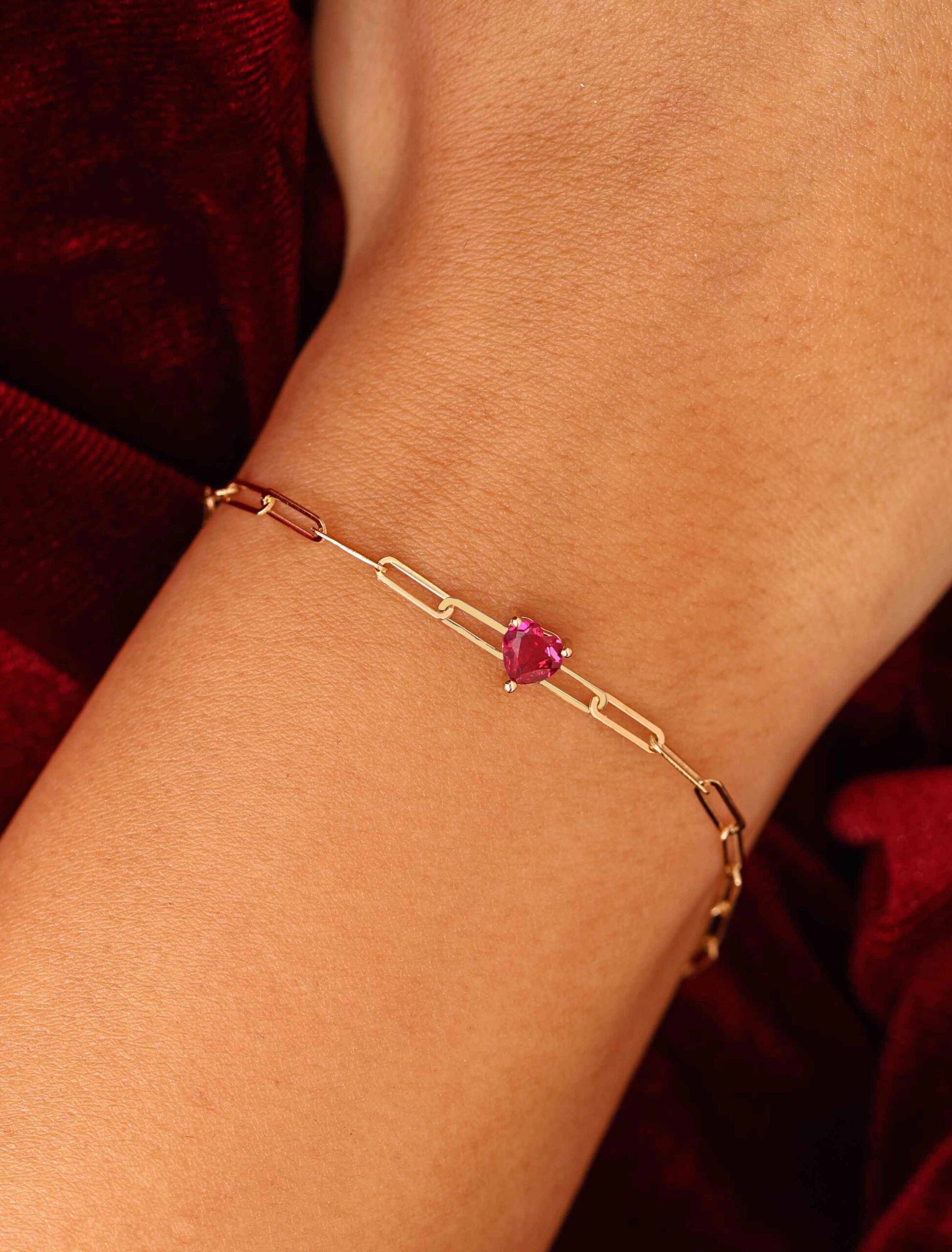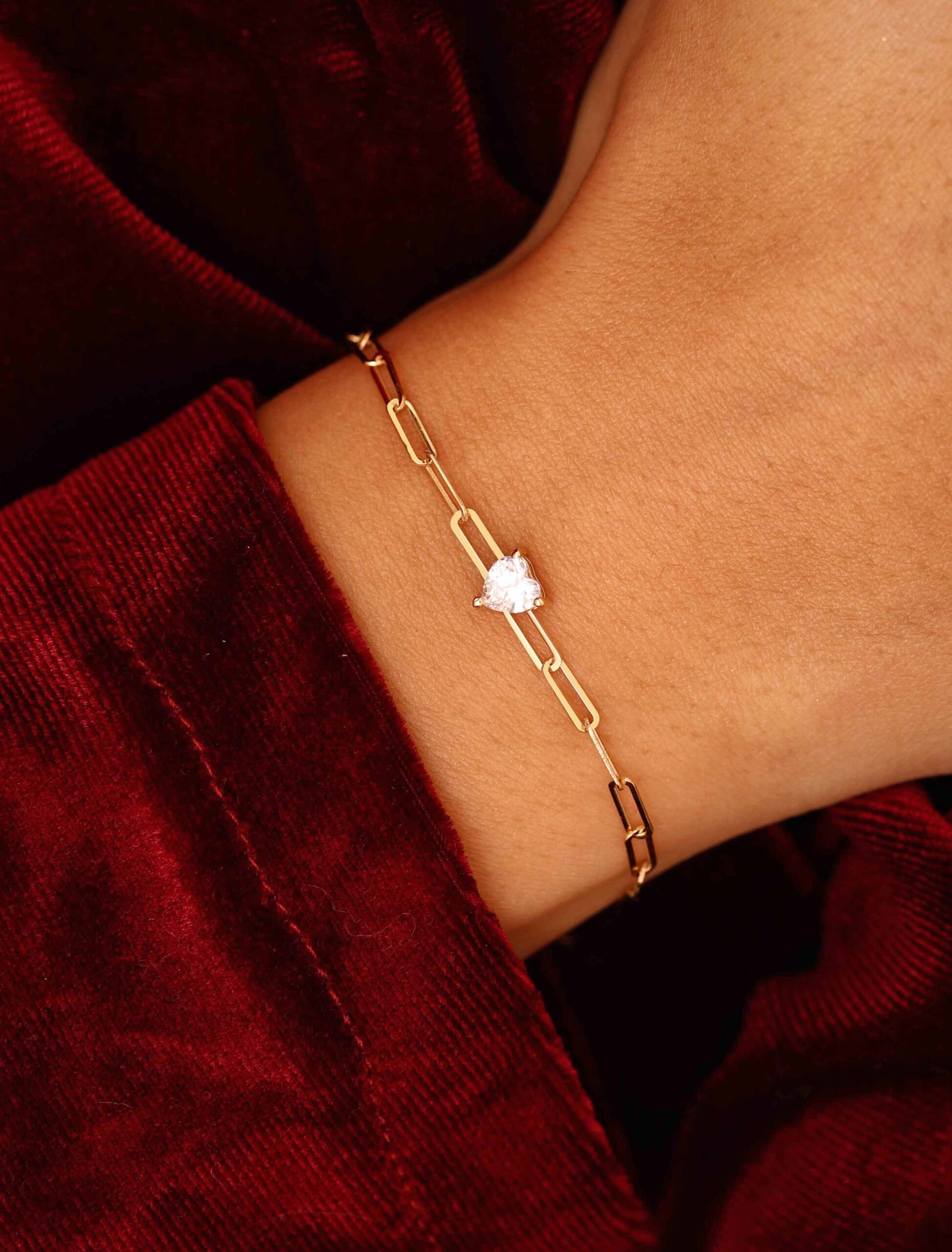 A celebration of love and bold femininity, this 18k gold bracelet pairs a modern paper clip chain with a glowing heart. Designed to stand out, it’s a radiant reminder to wear your heart with confidence.