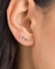 Dress up your ears with these playful yet edgy ear climbers. They feature three pyramids all along the curved wire and sparkling diamond. Get them now and rock them with any outfit.