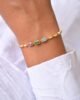 This elegant bracelet features a series of tiny, rectangular 3D shapes intricately linked together, creating a fluid and modern chain. At its center, three baguette-cut zircon stones are exquisitely set, each framed by a delicate 18k gold border. The geometric elegance of the bracelet offers a sophisticated yet contemporary touch, making it a versatile piece perfect for both everyday wear and special occasions.