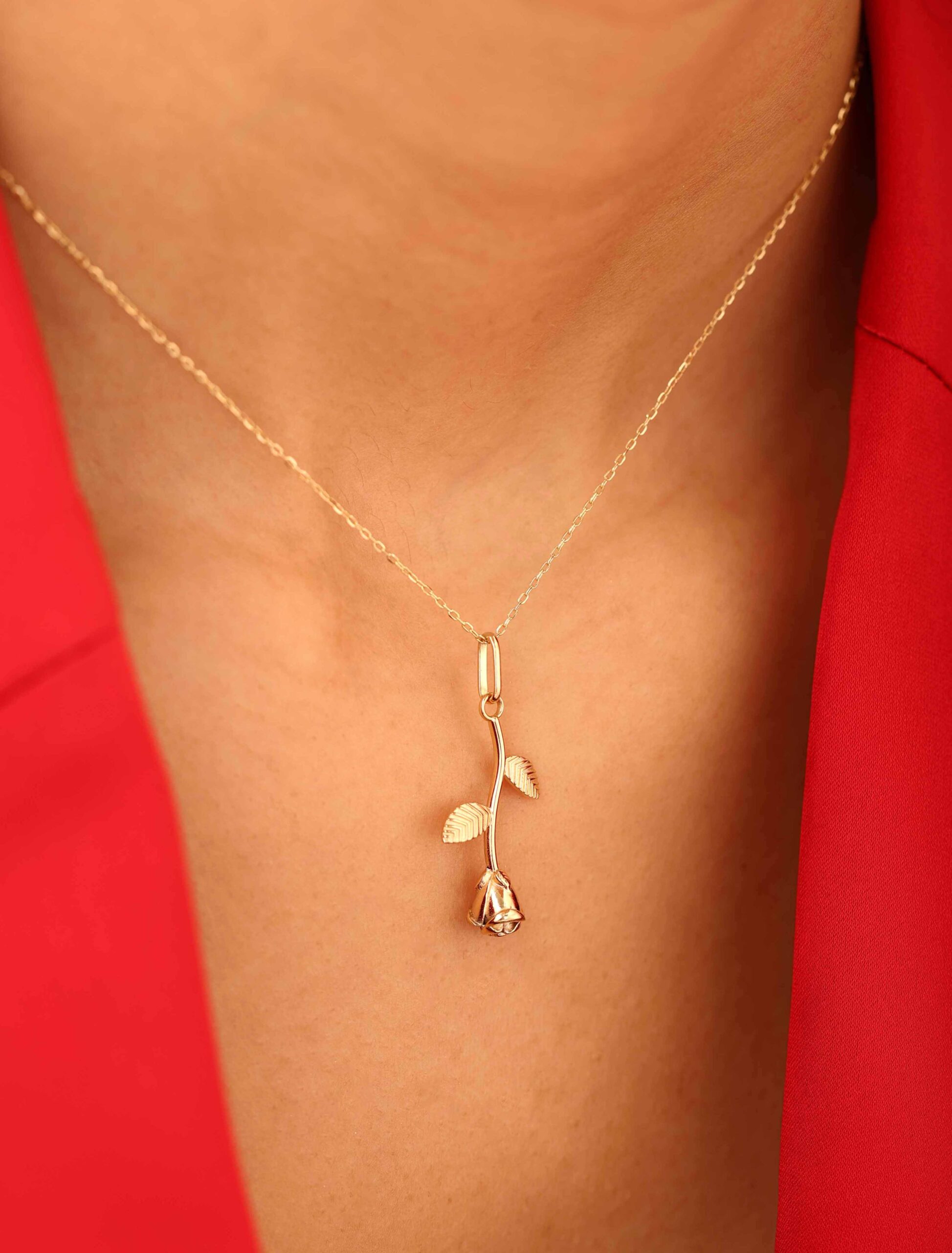 Add a touch of timeless romance with this 18K Gold Rose Pendant/Necklace. Crafted from genuine 18K gold, the elegant rose design symbolizes love and beauty, making it a meaningful piece for everyday wear or special occasions. A refined and graceful piece that shines beautifully on its own or layered with other favorites.