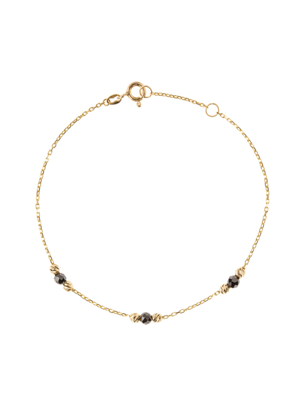 With its delicate design and splendid onyx black beads, this 18k gold bracelet is perfect for everyday wear and for stacking with other styles. Pair it with its necklace and anklet for a matchy look.